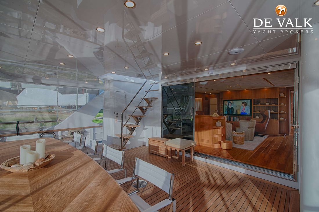 A stunning 27-meter Navetta, custom-built by the renowned Seven Stars shipyard in Pisa.
