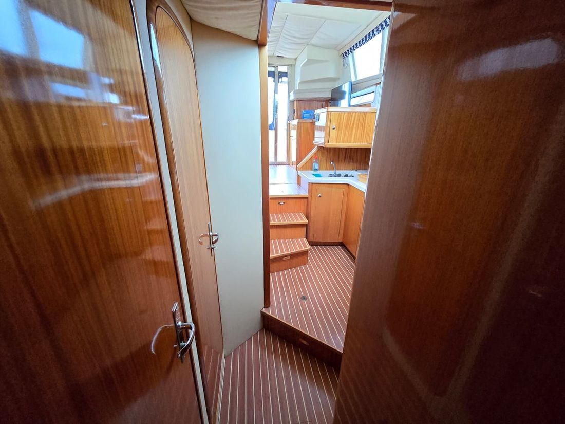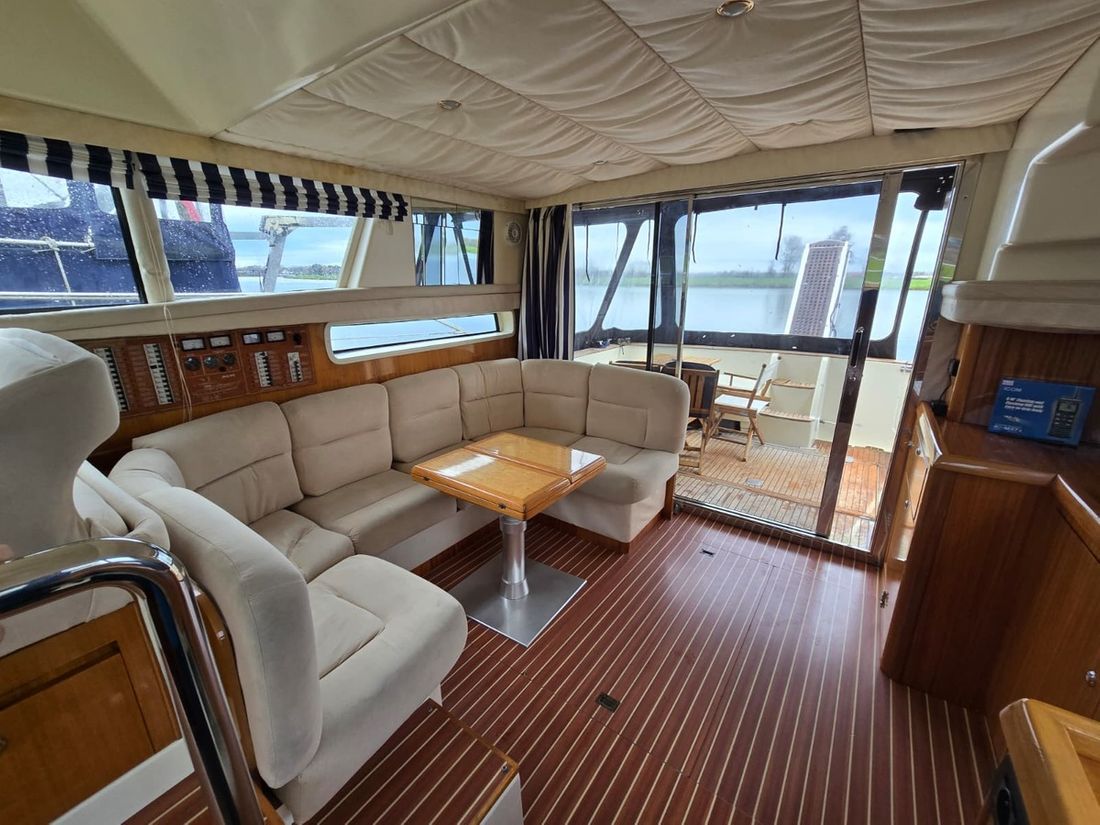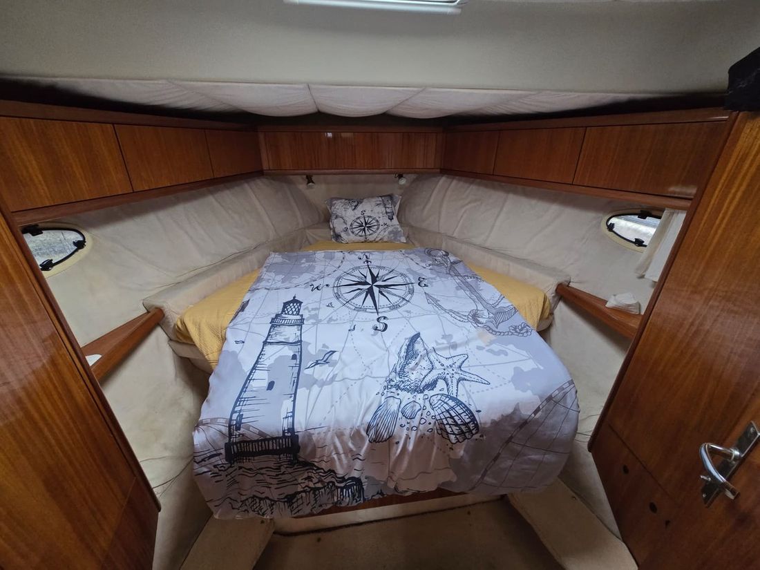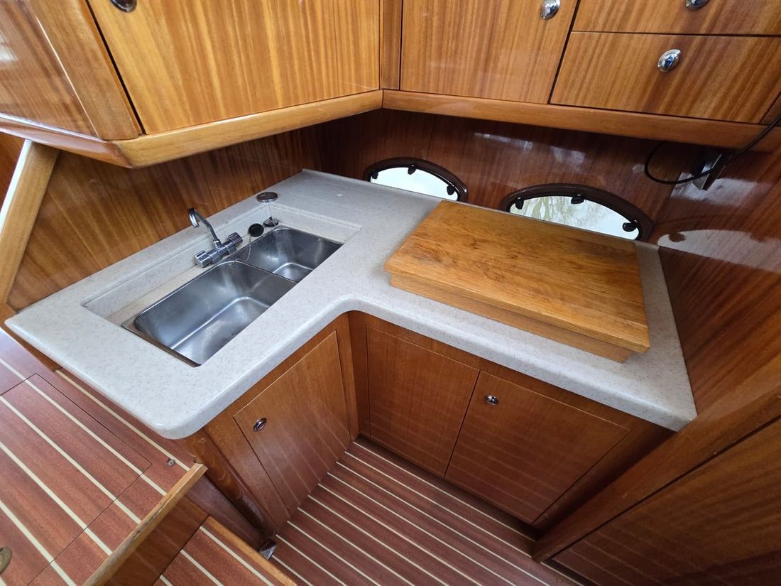 Spaces Saloon Cabins 2 Decoration Type interior Modern, light Mattresses Cushions Curtains Water Water tank & material Capacity 800 litre Water tank material plastic Water tank gauge Inhoud 40 litre Waste water tank Waste water tank drainpump Deck suction Water system pressure Hot water Deck wash pump Deck Shower Plumbing Number of showers 2 Toilets 2 Manual Electric Entertainment Television Radio/CD player Kitchen Cooker & fuel Number 2 Cooking fuel gas Microwave Fridge & power source Freezer Climate control Heating 1 hot air -