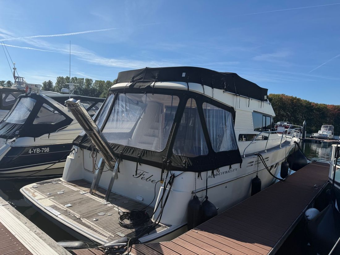 Category Reference number 2006387 Reference 04022250095 Category Motor Yacht Brand ACM Dynasty Model 43 Fly The WIN (Watercraft Identification Number) FR-ACMD-019CF999 Ship's name Febe Berth Type Office Other in verkoophaven Schepenkring Roermond Country Netherlands Latitude 51.18614059 Longitude 5.97053770 General Status Available New or used Used Boat type Motorboat Year of construction 1999 Hull material GRP (polyester) Broker yacht URL https://krekelberg.yachtshift.nl/6387/acm-dynasty-fly-febe Dimensions Length 1400 centimetres Width 430 centimetres Draught 90 centimetres Vertical clearance 400 centimetres Berths fixed 4 -