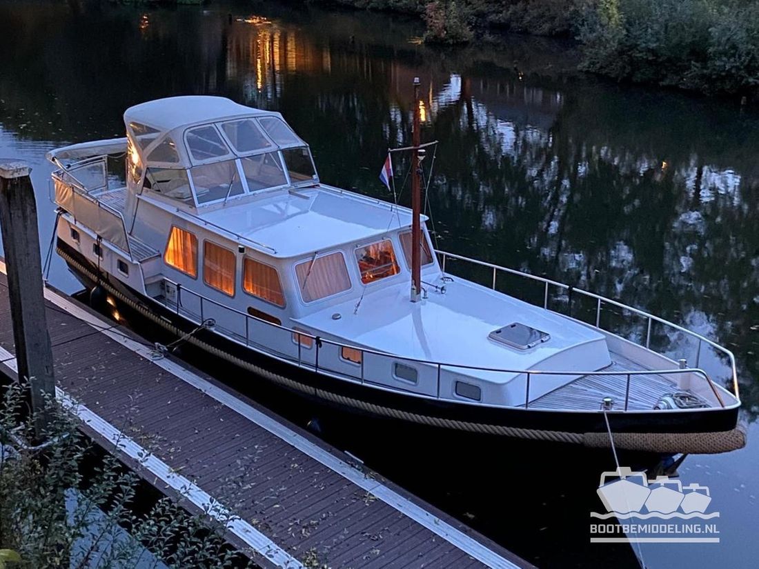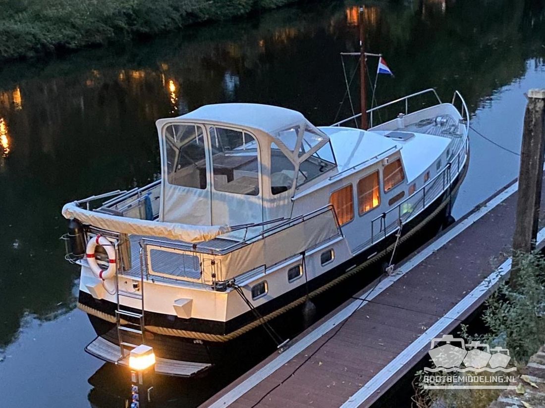Delivered new Shipyard Van der Werf, Doesburg CE-category exempt Hull deck superstructure Hull shape multi-chine Comments Hull shape Fitted with bilge keels. In 2025 the hull was professionally painted (2K) and antifouling was renewed. Hull colour black Deck colour white Deck construction steel Comments Deck construction Fitted with teak decks. The teak deck is in excellent condition. Aft cockpit Superstructure Horizontal parts of the superstructure painted in 2025. (2K) Windows Aluminum window profiles. Dimensions and weights Comments Vertical clearance Crawling height: 250 cm, top of windows: 300 cm, top of sprayhood: 360 cm, top of mast: 500 cm. Minimum height 250 cm Displacement 14 tonnes Steering and Drift Limitation Steering system wheel Position steering system dual control Rudder single Keel/Lee board full keel Brand trimflaps Kimkielen Brand stabilizer Kimkielen -