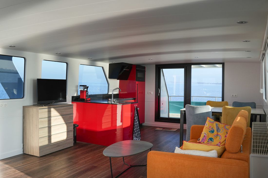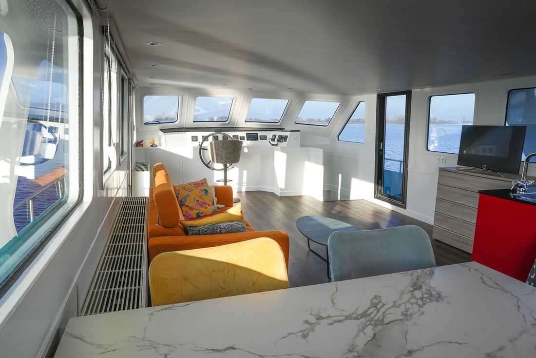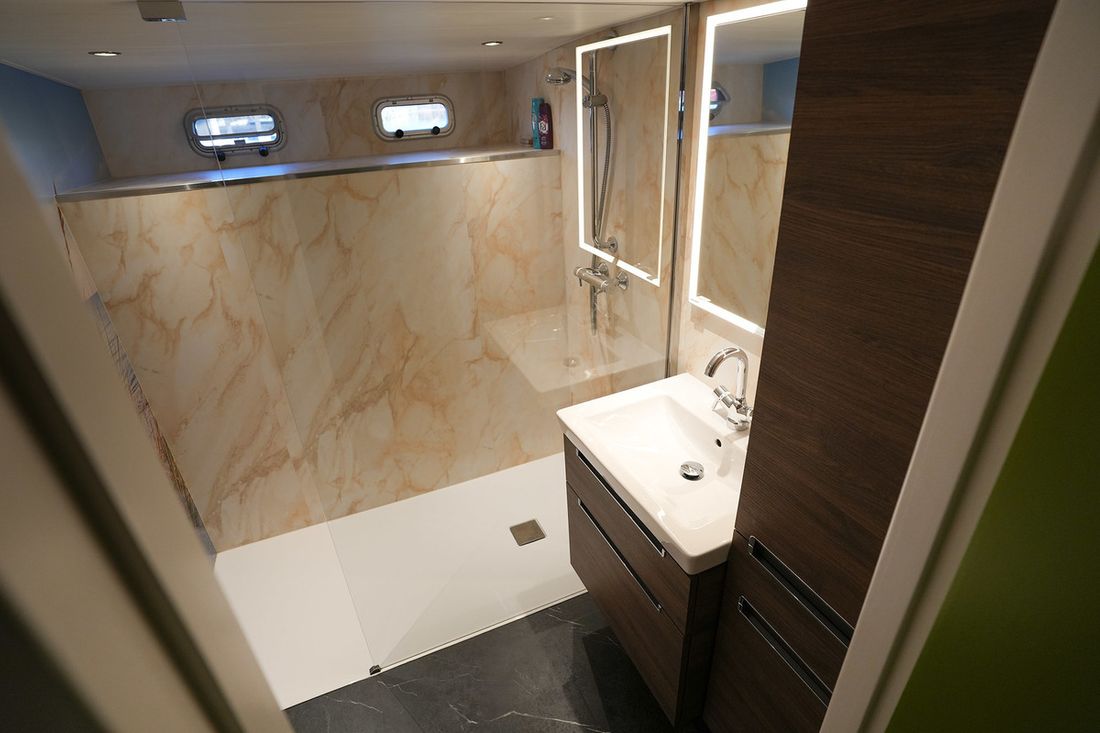 Spaces Saloon Separate Dining area Engine room Cabins 3 Decoration Type interior Modern, light Mattresses Cushions Curtains Water Water tank & material Capacity 2000 litre Water tank material steel Water tank gauge Waste water tank Waste water tank drainpump Water system pressure Hot water Deck wash pump Plumbing Number of showers 1 Toilets 1 Electric Kitchen Cooker & fuel Comments Cooker & fuel Pilgrim Number 4 Cooking fuel induction Oven Comments Oven Siemens combination oven/microwave Amount 1 Microwave Comments Microwave Siemens combination oven/microwave Amount 1 Fridge & power source Power source electric Climate control Central heating -