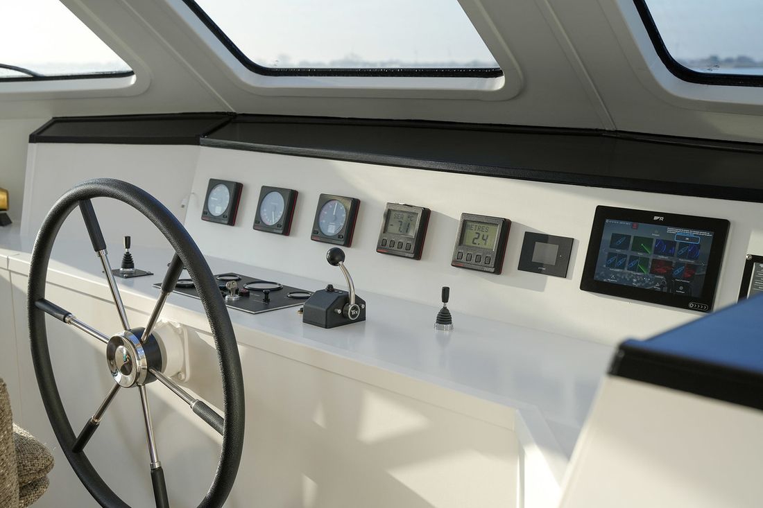 Basic tools Compass Brand kompas Autohelm Brand log/speed Autohelm Depth gauge Brand depth gauge Autohelm Navigation lights Rudder position indicator Modern electronics GPS Communication VHF -