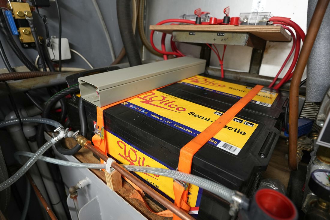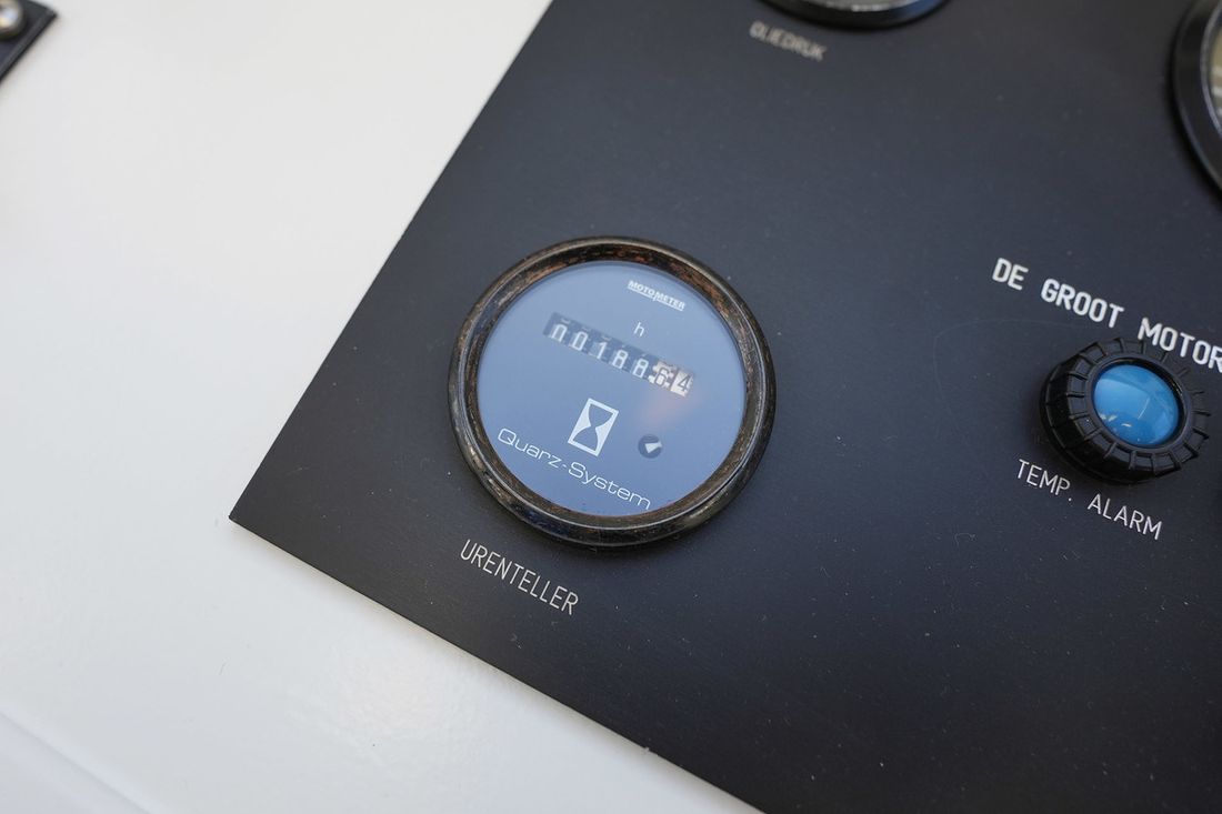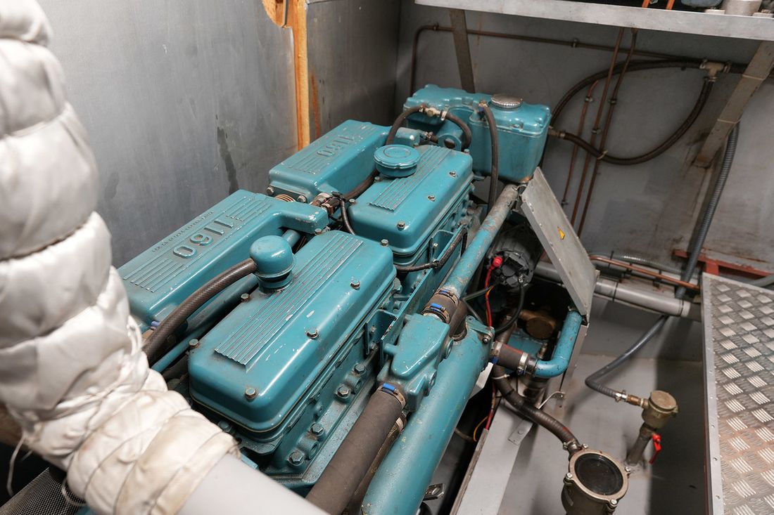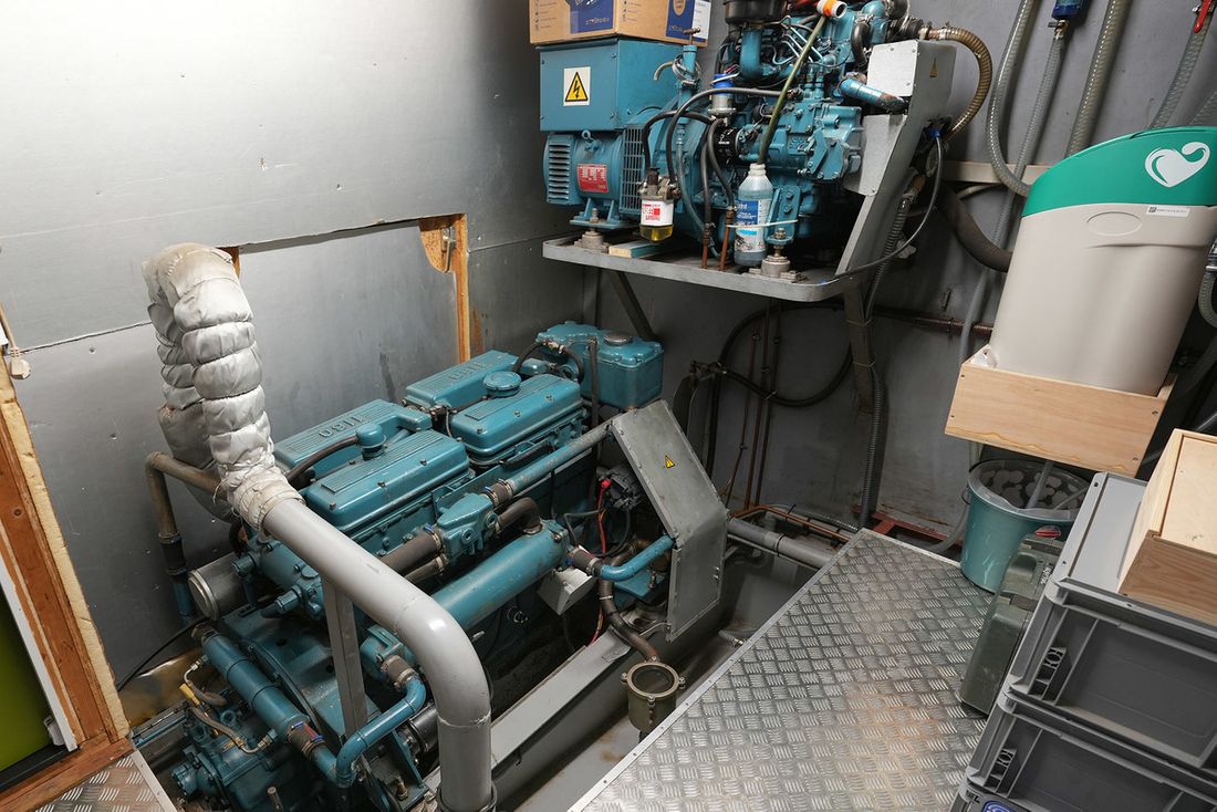 Engines Number of identical engines 1 Starting type electric Main engine Type inboard Brand DAF Model 1160 Serial number GB730216 Number of cylinders 6 Power 180 hp Fuel diesel Drive Transmission shaft Propulsion propellor Tank Fuel tanks Number 2 Total fuel tank(s) capacity 1000 litre Fuel tank material steel Measuring instruments Fuel tank gauge Tachometer Oil pressure gauge Temperature gauge Bow and stern thruster Bow thruster electric Electricity Battery Number 6 Battery charger Capacity 130 Alternator Battery monitor Generator Comments Generator 10 kVA Brand generator Mitsubishi Inverter Capacity 3000 Shore power Shore power cable 12V 24V 220V -