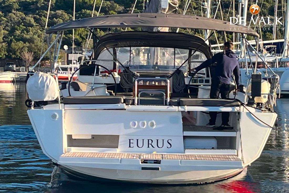 This beautiful Dufour Grand Large "Eurus" offers comfort, space, and sailing performance for larger groups. Equipped with 5 spacious cabins, air conditioning, generator, and twin steering wheels. The large, full-teak cockpit provides a luxurious look and excellent comfort on board.