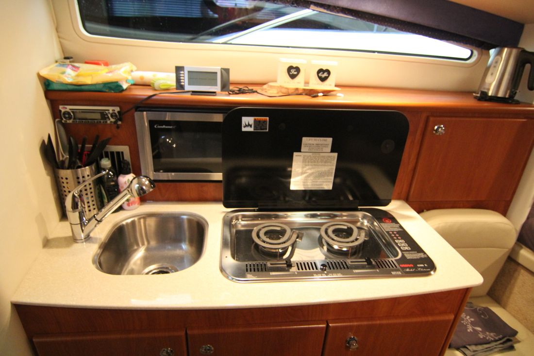 Spaces Saloon Comments Saloon Round seating with table Comments Headroom 200 cm in tent Engine room Cabins 1 Comments Berths 4 single beds, can be converted into 1 bed Layout and spaces inside 2 berths in the bow, 2 under the steering position Decoration Type interior Modern, light Comments Type interior Interior in new condition Color upholstery blue Mattresses Cushions Curtains Water Water tank & material Capacity 125 litre Inhoud 100 litre Waste water tank Water system pressure Hot water Deck Shower Plumbing Number of showers 1 Toilets 1 Electric Entertainment Television Radio/CD player Kitchen Cooker & fuel Comments Cooker & fuel Electric + fuel Number 2 Cooking fuel electric Microwave Amount 1 Fridge & power source Power source electric Freezer Comments Freezer in refrigerator Climate control hot air Air conditioning -