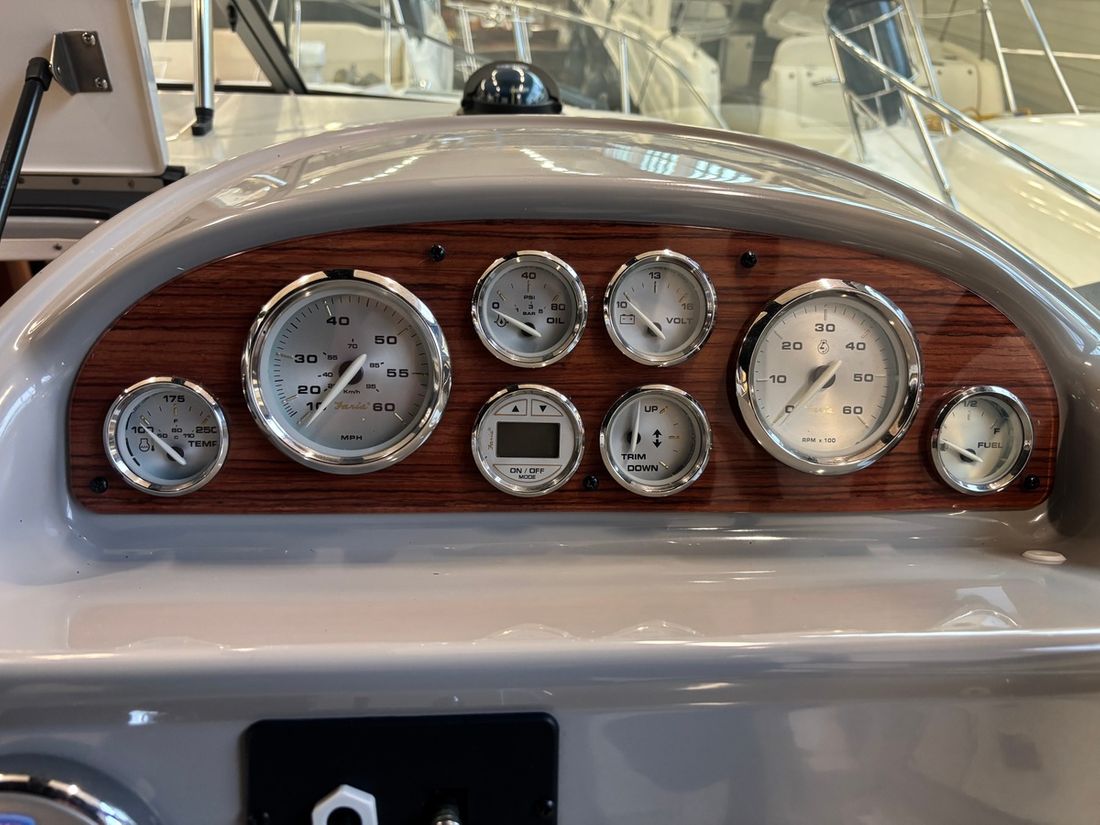 Engines Number of identical engines 1 Starting type electric Main engine Type inboard Brand Mercruiser Model 350 Magnum Serial number 1A341671 Year 2009 Power 300 hp Fuel gasoline Drive Transmission stern drive Propulsion propellor Comments Propulsion Duo prop Tank Fuel tanks Measuring instruments Fuel tank gauge Tachometer Oil pressure gauge Temperature gauge Bow and stern thruster Bow thruster electric Electricity Battery Comments Battery 2025 Number 2 Alternator Generator Capacity 3 Brand generator Westerbeek Inverter Shore power Shore power cable -