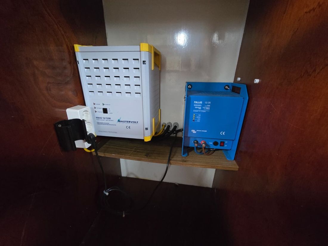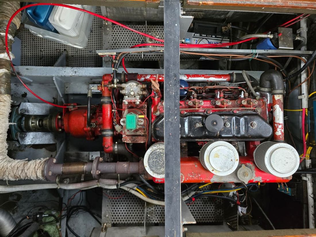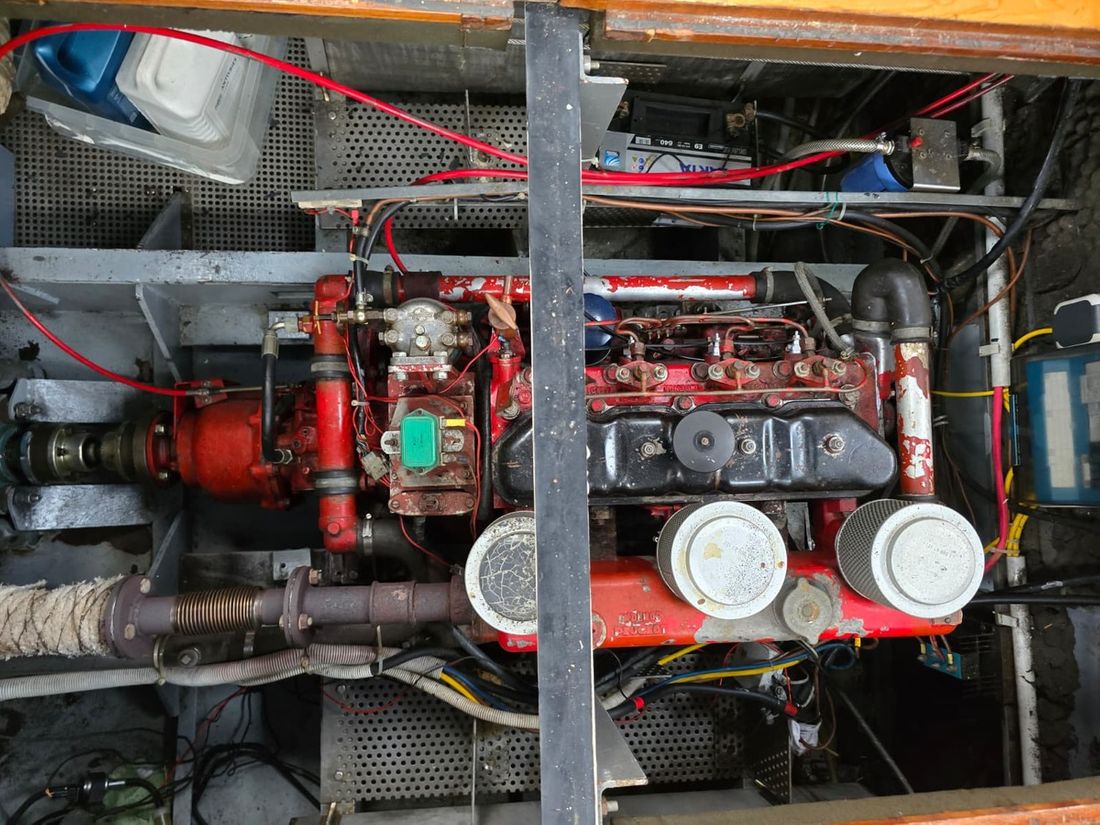 Engines Number of identical engines 1 Starting type electric Main engine Type inboard Brand Peugeot Model Indenor Serial number 563030053 Number of cylinders 4 Power 50 hp Hours counter Engine hours 1107 Fuel diesel Fuel consumption 3 litre/hour Tank Fuel tanks Number 1 Performance Max speed 12 km/h Measuring instruments Fuel tank gauge Tachometer Temperature gauge Electricity Battery Battery charger Alternator Inverter Capacity 1200 Voltmeter Shore power 12V 220V -