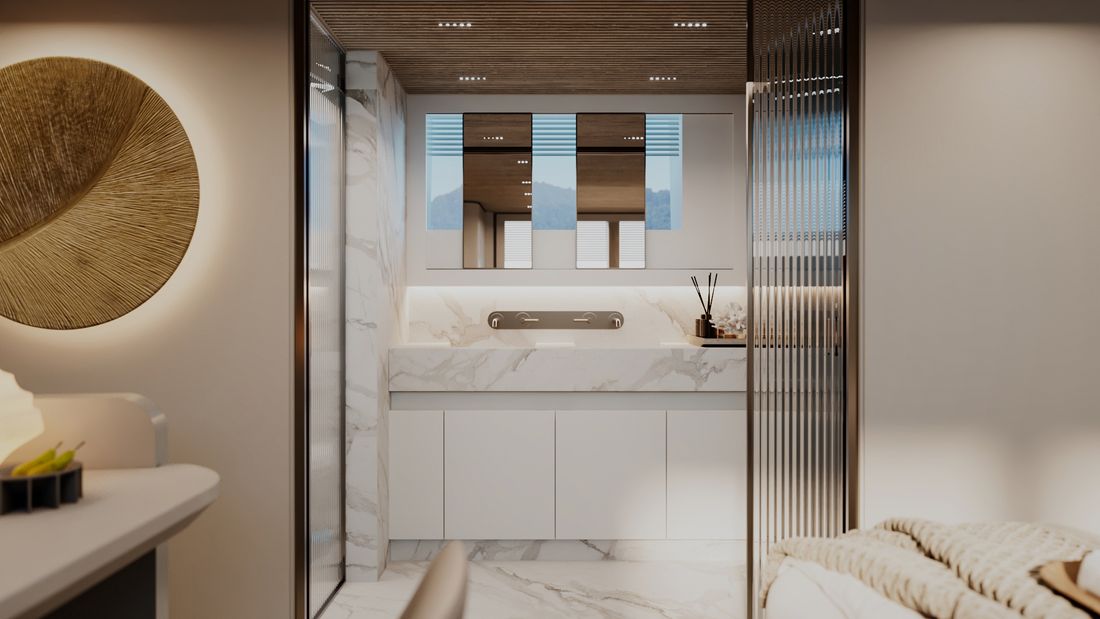precision, performance and uncompromising quality, and expresses it on a grander canvas. Often described as the ultimate SUV of the seas, the Stratos DB75 is engineered to operate with absolute confidence in demanding conditions, while offering outstanding comfort, space and versatility. Whether navigating open waters or extreme climates, its performance remains consistent, controlled and dependable. Bold yet refined. Strong yet sophisticated. The DB75 pairs an unmistakable presence with meticulous Dutch craftsmanship, resulting in a yacht that confidently defines its own category. Not a comparison, but a continuation. The DB75 stands as a statement of scale, capability and assured authority on the water.