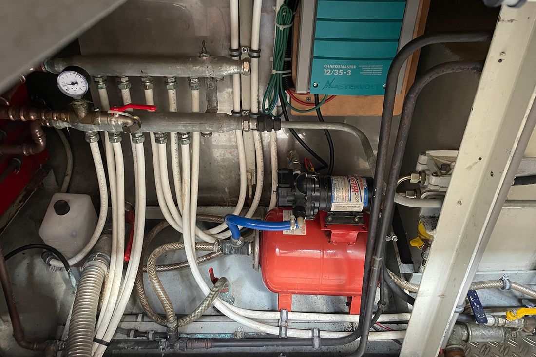 Engines Number of identical engines 1 Starting type electric Main engine Type inboard Brand Yanmar Model 4JH2-DTE Serial number 41529 Year 1998 Number of cylinders 4 Power 100 hp Hours counter Engine hours 655 Fuel diesel Drive Transmission shaft Propulsion propellor Cooling system indirect Tank Fuel tanks Number 2 Total fuel tank(s) capacity 460 hp Fuel tank material steel Measuring instruments Fuel tank gauge Tachometer Oil pressure gauge Temperature gauge Bow and stern thruster Bow thruster electric Stern thruster electric Electricity Battery Number 5 Battery charger Capacity 35 Alternator Generator Comments Generator in whisper box with water/exhaust gas separated drain Capacity 5 Brand generator Mase Inverter Capacity 2000 Voltmeter Shore power Shore power cable 12V 24V 220V -