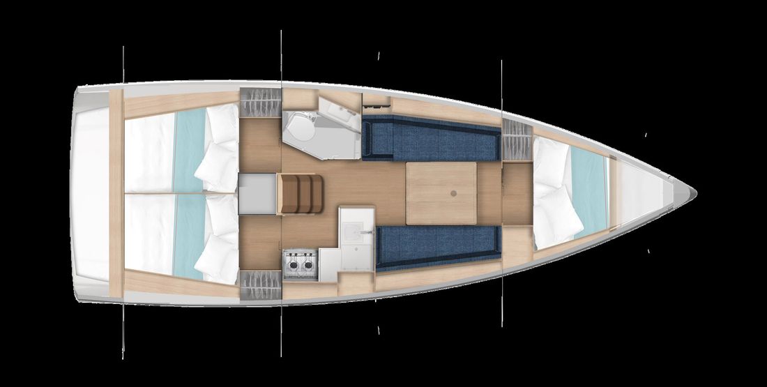 Soon in stock at Nautical Quarter Stavoren: a brand new Jeanneau Sun Odyssey 350! This model is equipped with two cabins, one wet room and a short keel, giving the yacht a draft of 1.49 m. The Jeanneau Sun Odyssey 350 is a modern and sporty yacht, equipped with the latest options for carefree and comfortable sailing. The model's design combines performance, innovation and luxury, just as you would expect from Jeanneau. - Extra Winch handle - Windex 15 - 28 meters chain (Ø 10 mm) - 40 meters anchor line (Ø 18 mm) - 4 mooring lines diameter 16, length 12m Comfort & finish - Trim Level Preference ? Luxurious interior finish for extra comfort, with long but also short cruises. Included in the preference package: - 2 rope pockets in the cockpit - 2 fall bags on the cabin roof - Indirect interior lighting (ambient lighting) - Lighting on the bulkhead - Indirect lighting in the cockpit floor (mood lighting) - Upholstered partitions in the saloon - Signature clock and barometer set at the chart table This Sun Odyssey 350 can be viewed at Nautisch Kwartier Stavoren. Would you like more information or make an appointment? Contact us and we will be happy to tell you all about this fantastic sailing yacht. Navigation equipment: Chain counter, DSC vhf (RAYMARINE RAY63 VHF), Log (RAYMARINE i70s), Autopilot (RAYMARINE p70s + Accu 200 core unit and gyrocompas). Staging and technical: Anchor (Delta 16kg (Anchoring kit)), 4 Selftailing winch, 2 Batteries (2 keer 100AH AGM & 1 boegschroef accu), Battery charger (40AH), Shore power cable, Safety rail, Bow Thruster (Elektrisch), Courtesy Lights (In de salon), Battery Monitor, Fenders, Platform (Uitklapbaar zwemplatform), Automatic Bilge Pump, Manual Bilge Pump, Side door (Lifeline gates), Teak Cockpit, Shorepower connector, Electric Windlass, Strand rigging, Gang Board, swimming ladder, cockpit table (Houten kuiptafel), Living Room Foldable Table, Windex (WINDEX 15). Domestic Facilities onboard: Interior wooden floor, 12V Outlets, 220V Outlets, Manual Toilet. Security equipment: Self-draining cockpit, Life buoy, Gas locker with drain. Sails accessories: Bowsprit, Vang. Kitchen and appliances: Freezer (Vriesvak), Galley, Burner (2 pits), Mechanical Refrigerator. Upholstery: Cushions (Cockpit cushions), Cockpit Cushions, Curtains.
