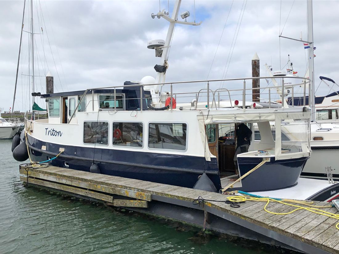 Category Reference number 1609 Reference 260101 Category Classic yacht Additional category Motor Yacht Brand Trawlerjacht Model 48, zeegaand Ship's name Triton Berth Type Elsewhere Other Omgeving van Roosendaal General Status Available New or used Used Boat type Motorboat Year of construction 1992 Hull material Steel Account manager Jitse Doeve Short description This motor yacht has been thoroughly renovated by the current owner with the aim of undertaking long coastal voyages and cruises on the Baltic Sea, including Norway. Due to circumstances, this trawler yacht has primarily sailed in and along the coastal waters of France, Germany, the Netherlands and Belgium. The vessel is equipped with two new engines, and the entire technical installation has been replaced, including an extensive navigation system that ensures reliability and ease of use. Additionally, stabilizers have been installed for added comfort during long sea voyages. The interior has been completely adapted for these journey objectives, making the motor yacht suitable for both long-distance sea voyages and on the inland waterways. It is also a ship that is very suitable for living on board. The hull and freeboard have recently been blasted and coated with a new 2-component paint system, ensuring that the yacht is not only in top condition technically but also has an impressive visual appearance. If you are looking for a turnkey trawler yacht with excellent sailing characteristics both at sea and on inland waters, this is your chance to make your dreams come true. Motorization summary 2x Perkins-Sabre, 2x M225TI, 2x 148 Hp/2x 108 kW Broker yacht URL https://www.doevemakelaar.nl/nl/schip/1609/trawlerjacht-48-zeegaand Dimensions Length 1499 cm Width 434 cm Draught 160 cm Variable draught -