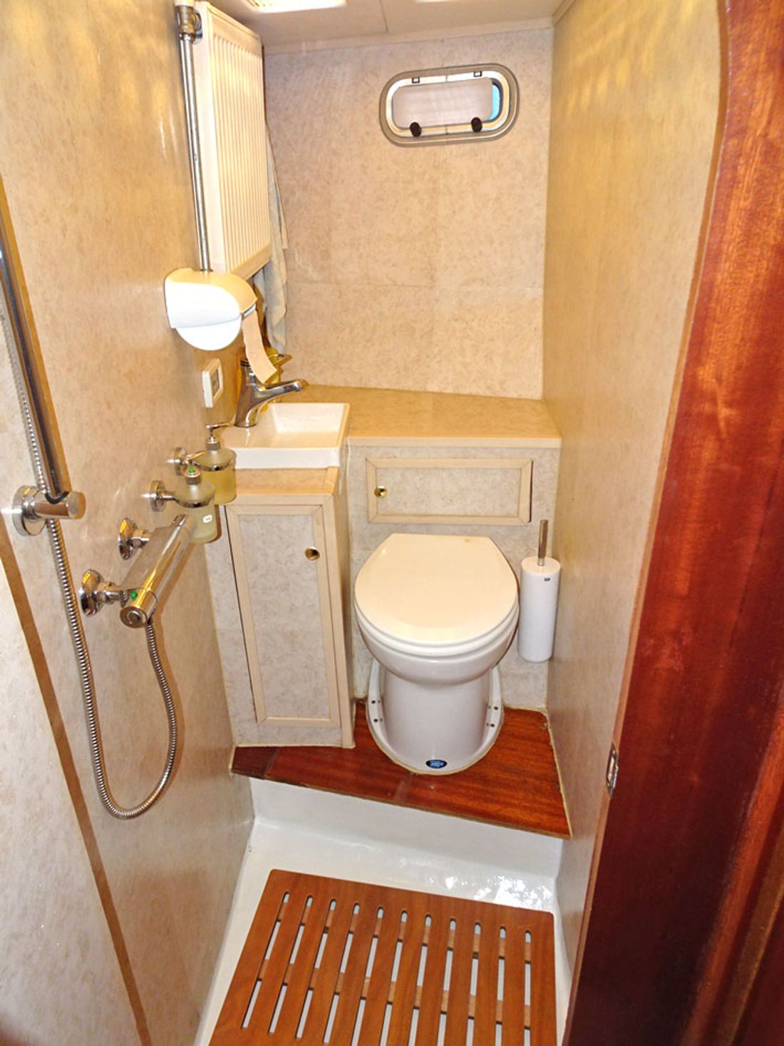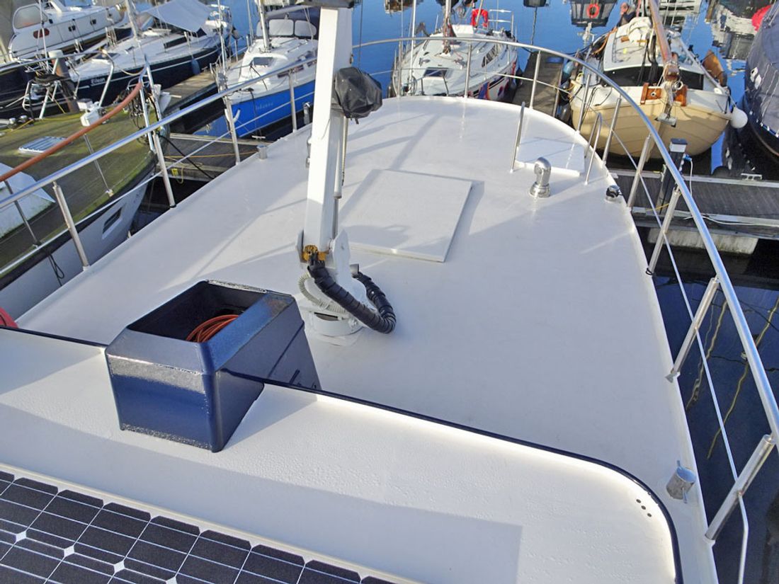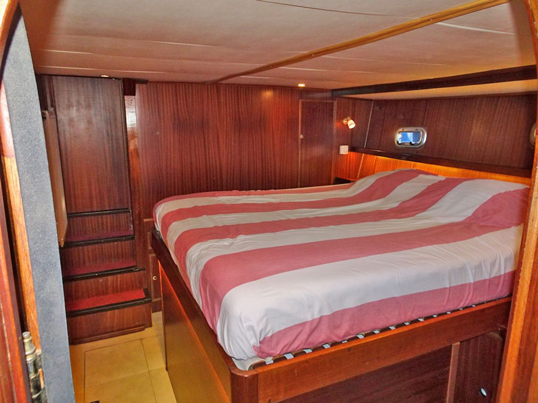 Spaces Comments Headroom salon (approx.) 1,90 m, galley (approx.) 2,17 m, ownerscabin (approx.) 1,86 m, bathroom / toilet aft (approx.) 1,72 m, corridor / walkthrough (approx.) 1,90 m, bathroom / toilet in the front (approx.) 1,91 m, forward cabin (approx.) 1,92 m, wheelhouse (approx.) 2,10 m Cabins 2 Comments Cabins 2 cabins Comments Berths Forward: 1x 2-pers, owners cabin: 1x 2-pers, Wheelhouse: 1x 2-pers Water Water tank & material Comments Water tank & material 800 litre, 2 plastic tank(s) Waste water tank Comments Waste water tank 200 litre, 1 plastic tank(s) Comments Water system electric water pump Hot water Comments Hot water 2x Vetus boiler/water calorifier via 230 Volt and engine cooling system, 80 & 40 litre Deck wash pump Plumbing Number of showers 2 Number of baths 2 Toilets 0 Comments Toilets 2x electric toilet Electric Entertainment Television Satellite reception Kitchen Cooker & fuel Comments Cooker & fuel 4-burner hob, induction cooker, cookerhood, stainless steel Number 1 Cooking fuel induction Comments Oven microwave/oven Amount 0 Amount 0 Fridge & power source Comments Fridge & power source present, 230 Volt Power source electric Freezer Comments Freezer present, 230 Volt Climate control hot air stove Central heating Comments Heating Kabola central heating, on diesel, 35 kW -