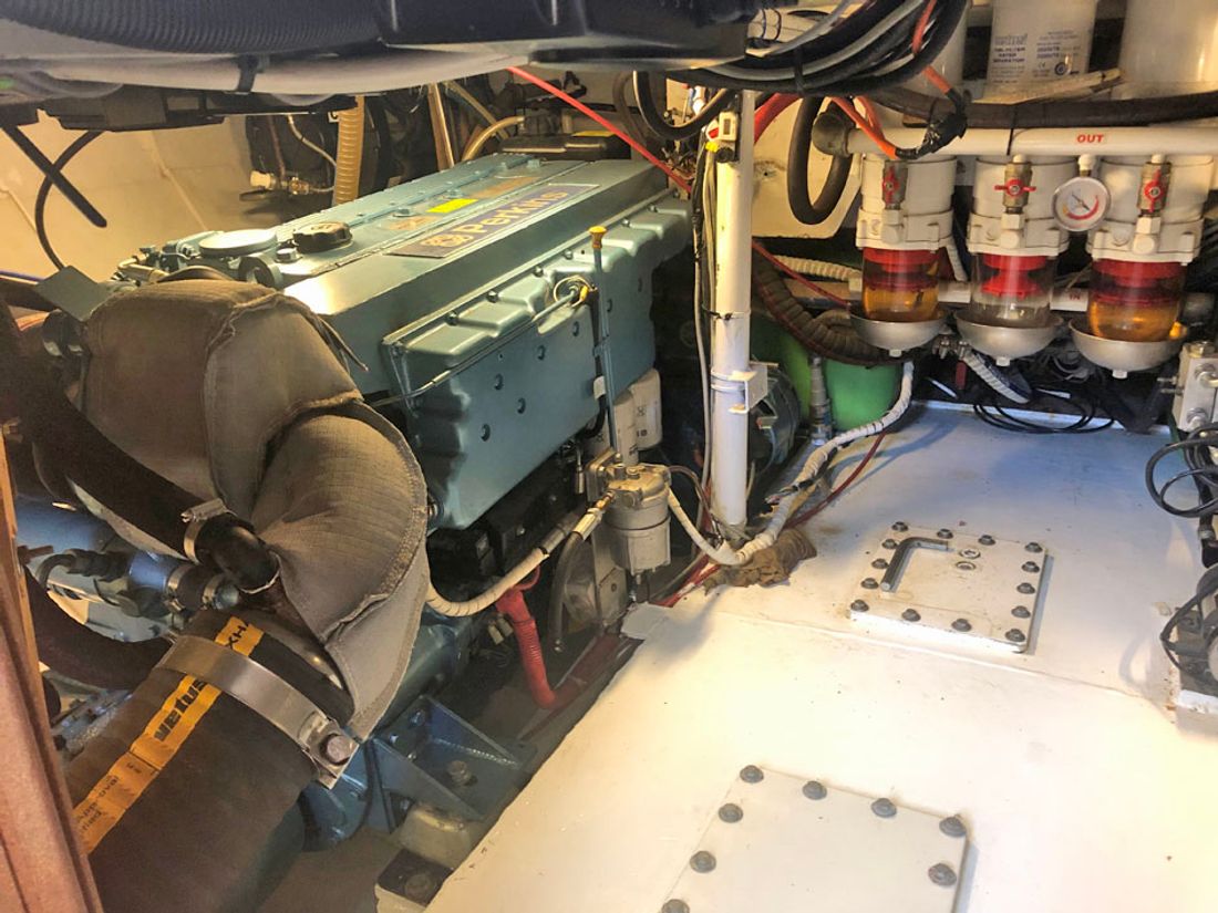 Main engine Comments Brand 2x Perkins-Sabre Year 2 Comments Year 2x 2014 new Comments Power 2x 148 Hp, 2x 108 kW Engine hours 0 Comments Engine hours portside 650, starboard 650 Fuel diesel Comments Fuel diesel, 14 ltr/hrs consumption of the engine at cruising speed (as declared), 35 ltr/hrs consumption of the engine at top speed (as declared) Drive Propulsion propellor Comments Propulsion Click on this link for more information from the broker: Trawler Yacht 48, seagoing Comments Cooling system 2x intercooling, 2x wet exhaust Tank Comments Fuel tanks 120 litre, 1 steel tank(s), 1 plastic tank(s) Fuel tank material steel Performance Max speed 6 knots Comments Max speed 9,5 knots top speed at 2300 RPM Cruising speed 6 knots Comments Cruising speed 6 knots cruising speed at 1600 RPM Measuring instruments Measuring instruments present, alarm system Bow and stern thruster Comments Bow thruster Click on this link for more information from the broker: Trawler Yacht 48, seagoing Comments Stern thruster Click on this link for more information from the broker: Trawler Yacht 48, seagoing Electricity Battery Comments Battery 2x 230 Ah starter batterie(s), 1150 Ah AGM 24 Volt traction batterie bank, 1x 45 Ah starter batterie(s) generator Battery charger Comments Battery charger 1x Victron Quattro combi inverter/charger 24/3000/70, 1x Victron Blue Power battery charger 12/8 Generator Comments Generator Kubota diesel genny, 11 kVA 230 Volt, 3000 RPM, wet exhaust with water separator, 15 running hours (approx.) Inverter Comments Inverter 1x Victron Quattro combi inverter/charger 24/3000/70, inverter 24-12 Volt Shore power Comments Shore power 230 Volt shore power connection Solar panel Comments Solar panel 3x Victron 280 Wp solar panel, Victron charge controller Comments Voltage 12 / 24 / 230 Volt, 230 Volt shore power connection -