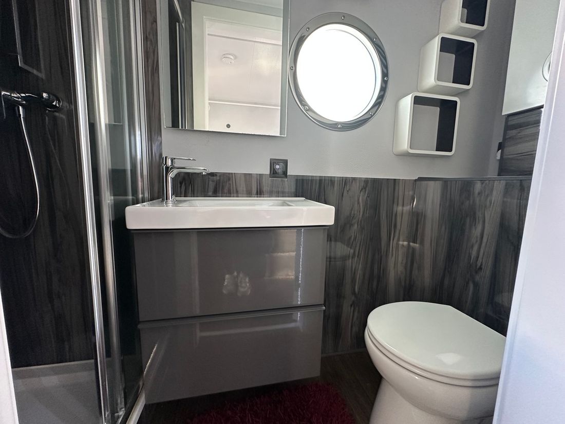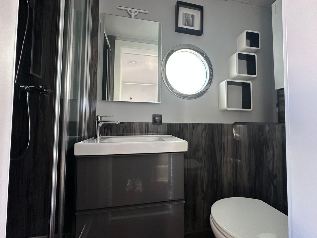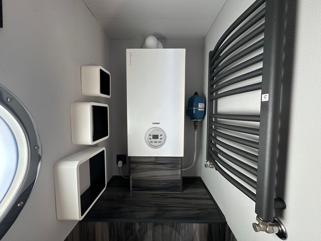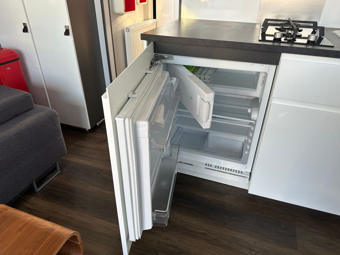 Spaces Saloon Decoration Type interior Modern, light Mattresses Curtains Water Water tank & material Capacity 1000 litre Water tank gauge Inhoud 1000 litre Waste water tank Waste water tank gauge Waste water tank drainpump Water system pressure Hot water Plumbing Number of showers 1 Toilets 1 Entertainment Television Kitchen Cooker & fuel Number 2 Cooking fuel gas Fridge & power source -