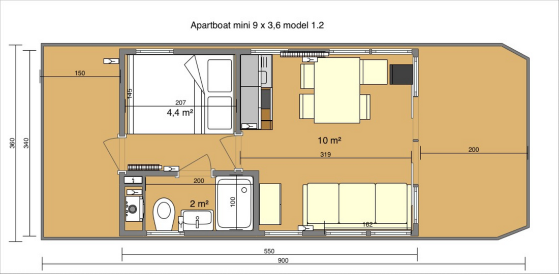 - LOA:9 x 3.6 x 0.5 m