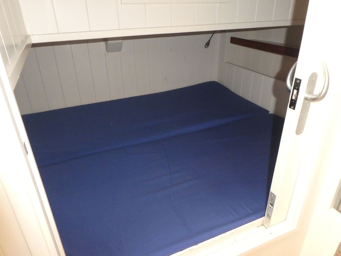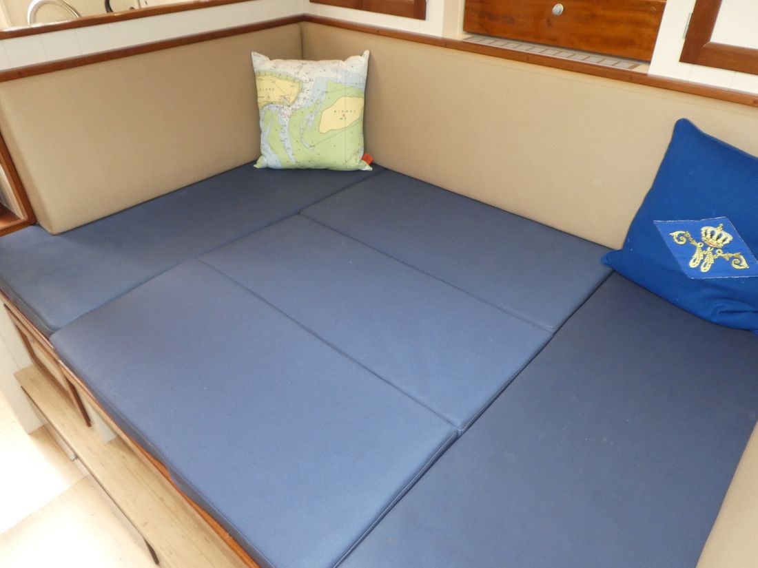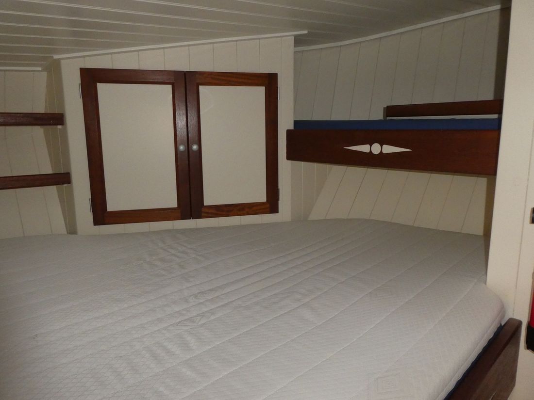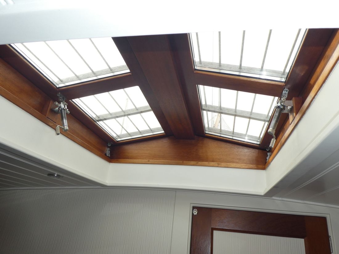 Spaces Comments Headroom No rafter frame but thickened surface allowing extra headroom Cabins 2 Comments Cabins cabin with double bed behind galley and spacious front cabin with double and single bed Saloon Decoration Type interior Modern, light Comments Type interior paneling with FSC approved wood in very light tones making interior remarkably light. Color upholstery blue Mattresses Cushions Curtains Water Water tank & material Comments Water tank & material 1x 160 l. and 1x 175 l. Capacity 335 litre Water tank material stainless steel Water tank gauge Inhoud 85 litre Waste water tank material stainless steel Waste water tank Water system Pressure system Hot water Comments Hot water boiler 80 L. Deck wash pump Deck Shower Plumbing Number of showers 2 Comments Number of showers 1x inside and 1x outside. (hot/cold) Toilets 1 Comments Toilets Planus Electric Entertainment Television Radio/CD player Comments Radio/CD player Blaupunkt Kitchen Cooker & fuel Comments Cooker & fuel Oceanchef Number 3 Cooking fuel gas Oven Fridge & power source Comments Fridge & power source Isotherm Power source electric Climate control hot air Comments Heating Webasto -