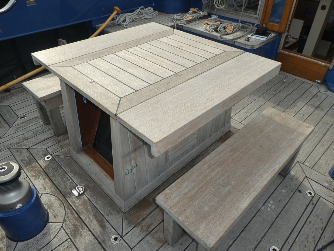 Anchor Anchors & material Comments Anchors & material stainless steel treble anchor, calculated according to Lloyds Number 1 Anchor connection chain Anchor windlass hydraulic Deck equipment Boat cover Comments Boat cover about hatches, engine box, winches Swimming ladder Comments Swimming ladder steps on rudder Dinghy Dinghy Brand dinghy Ribeye Outboard engine Comments Outboard engine electromotor Miscellaneous Fenders, lines Cockpit table -