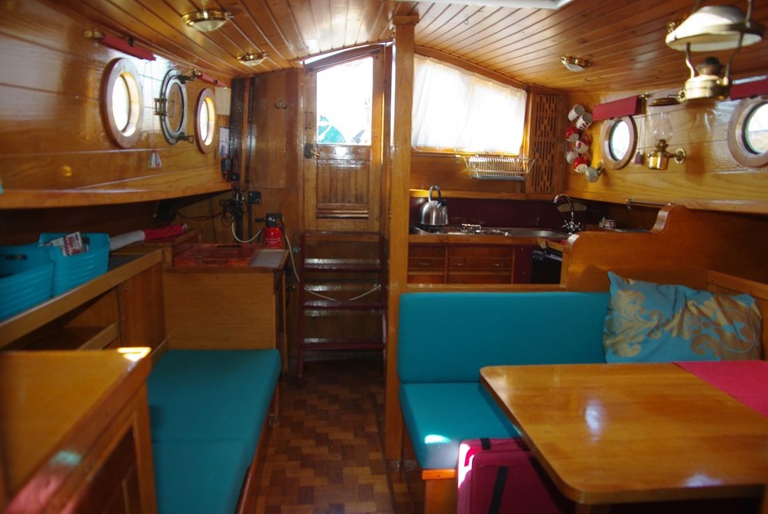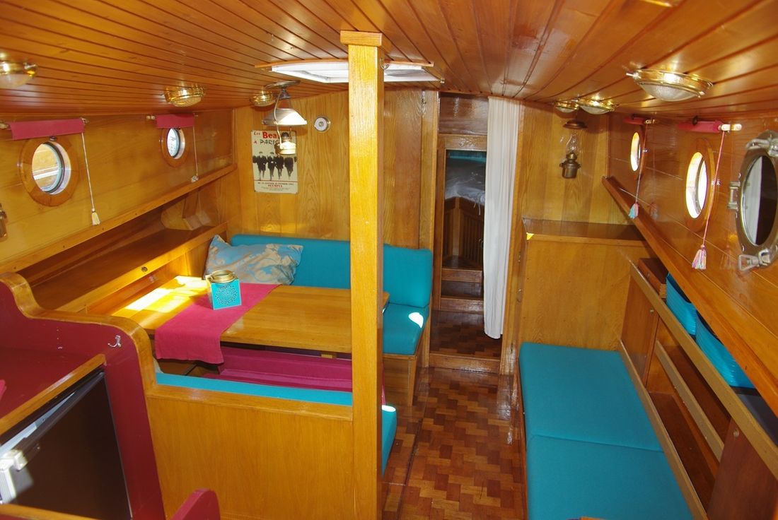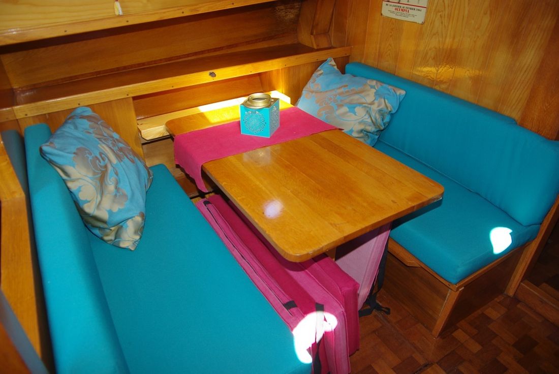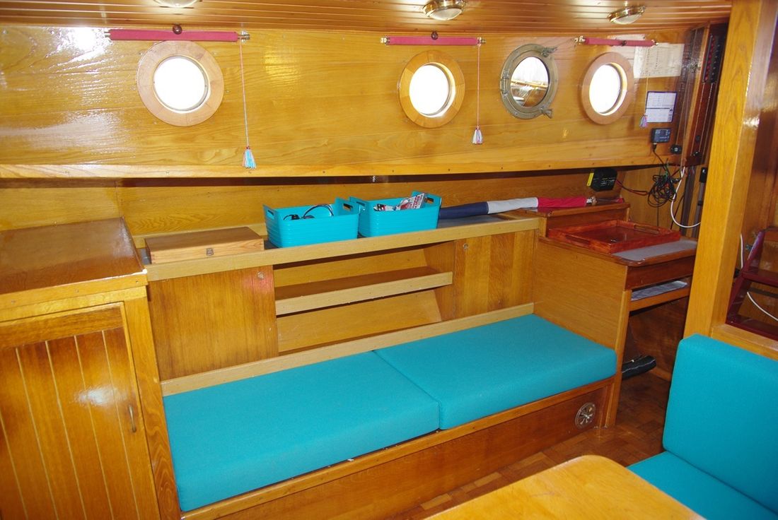Spaces Saloon Separate Dining area Saloon Decoration Type interior Classic, warm Color upholstery blue Mattresses Cushions Curtains Water Water tank & material Water tank material stainless steel Hot water Kitchen Cooker & fuel Number 4 Cooking fuel gas Fridge & power source Power source electric -