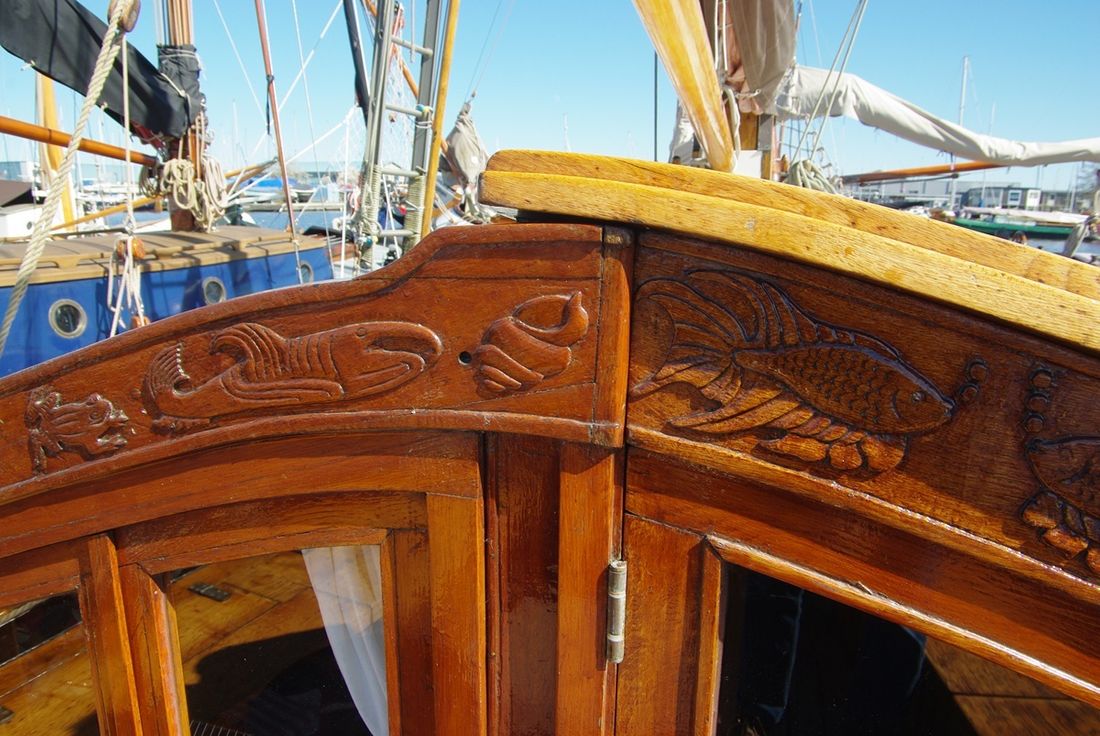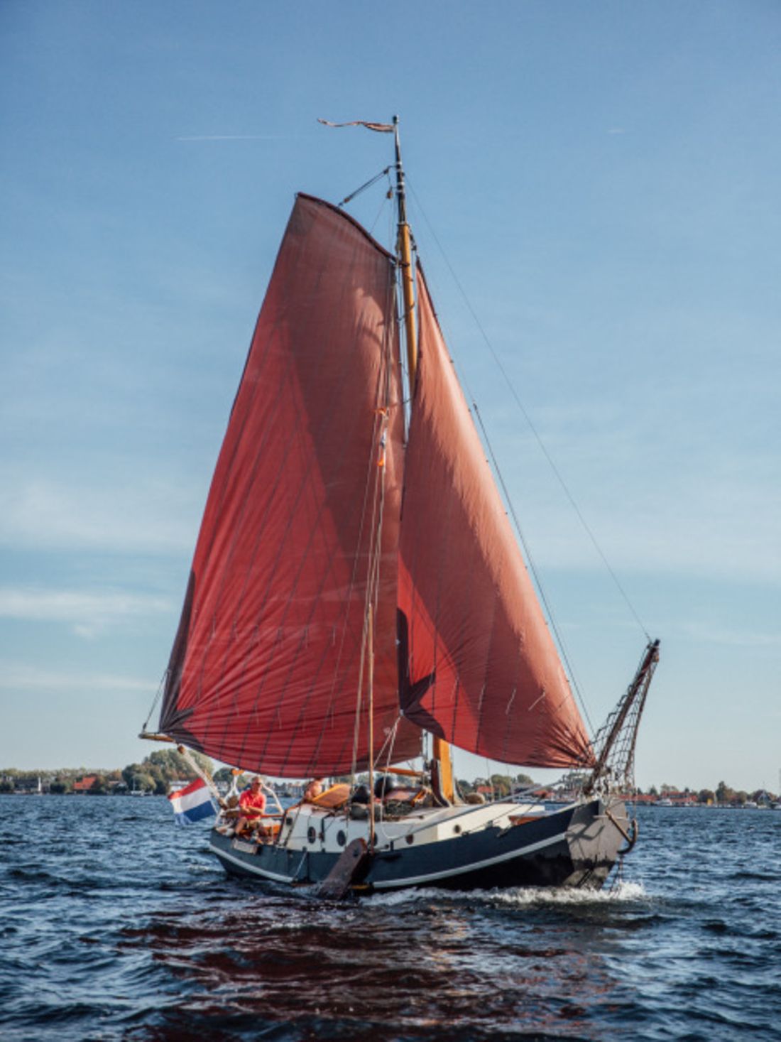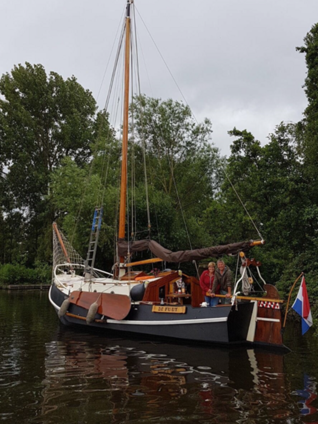 Delivered new Designer De Plaete Shipyard Ooltgensplaat Hull deck superstructure Hull shape flat bottom Hull colour black Deck colour beige Deck construction steel Cockpit aft cockpit Open cockpit Dimensions and weights Minimum height 240 cm Displacement 10000 kg Steering and Drift Limitation Steering system helm Position steering system outside control Rudder single Keel/Lee board leeboards -