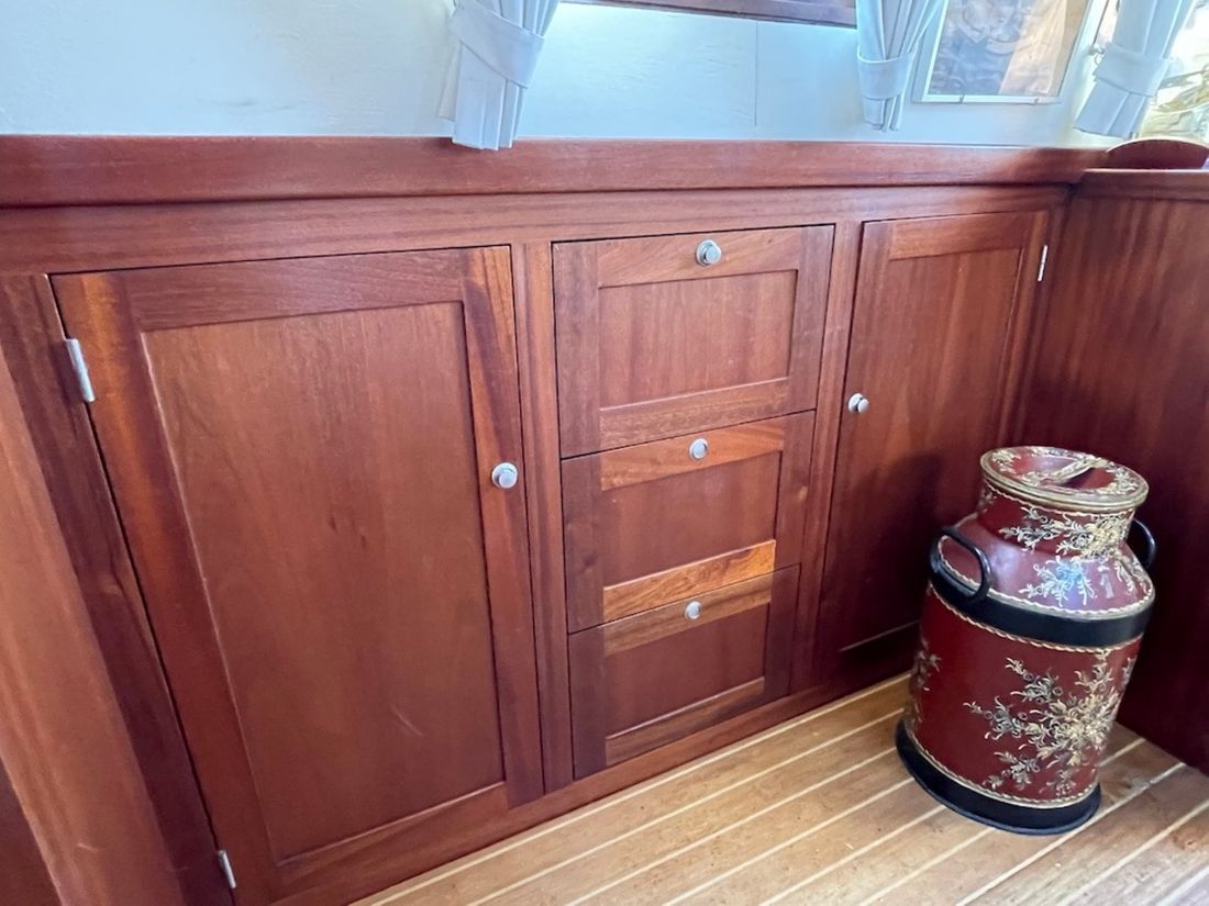 Main engine Brand Vetus Model P4.25 Year 1994 Number of cylinders 4 Power 62 hp Hours counter Engine hours 2350 Fuel diesel Brand gearbox PRM Drive Cooling system indirect Tank Fuel tanks Total fuel tank(s) capacity 200 hp Fuel tank material stainless steel Bow and stern thruster Bow thruster electric Electricity Battery Alternator 12V 220V -