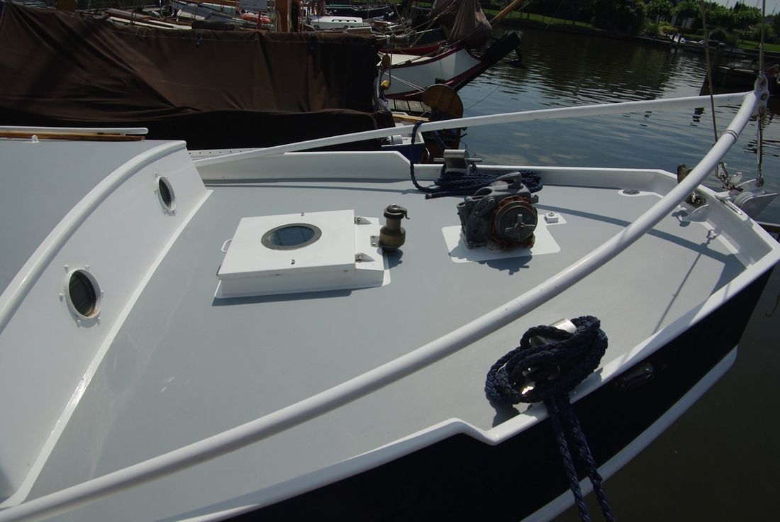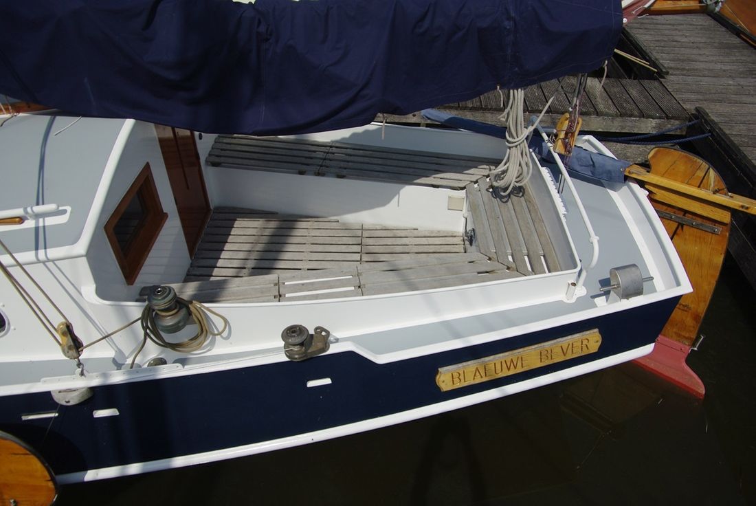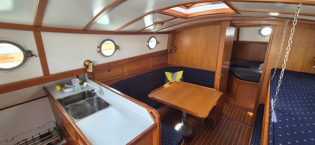 The "Blaeuwe Bever" (Blue Beaver), pedigree number 2211, is a very well-equipped and well-maintained Zeeschouw. The ship offers ample living and storage space. The standing height in the saloon is 190 cm and in the forepeak 181 cm. In 2001, the interior was completely refitted with teak wood. This new, luxurious and sleek yet light interior has a warm, nautical feel. The lighting and upholstery were also renewed in 2001.
