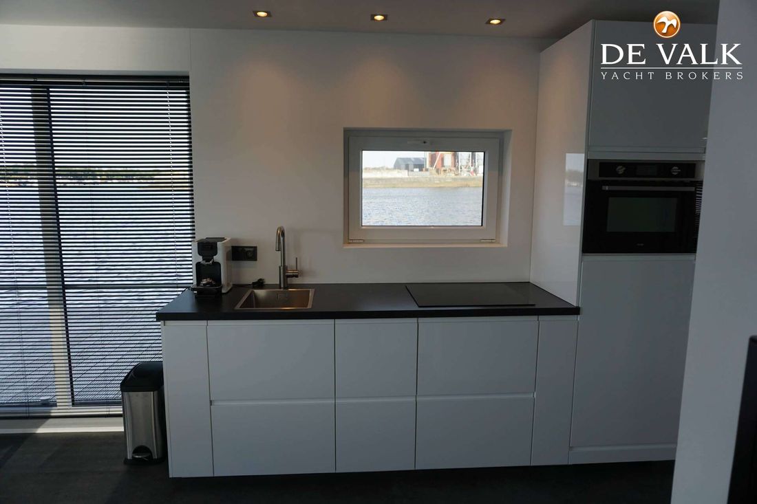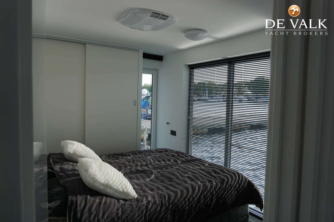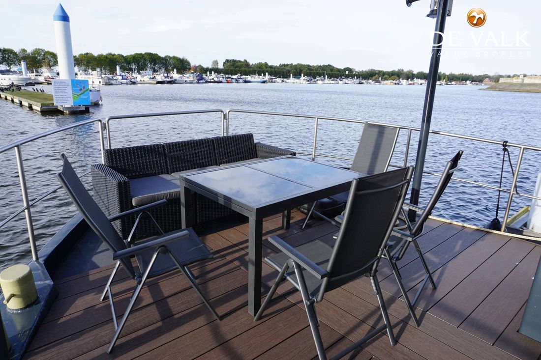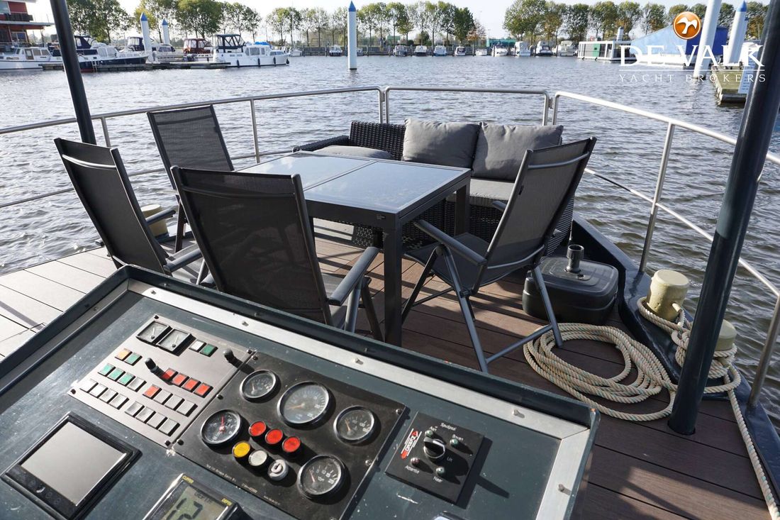 Comfortable houseboat contains everything you need to enjoy living and sailing on the water. The houseboat has 1 large bedroom and 1 small bedroom, a bathroom, living room, kitchen and a spacious terrace. This ship from 1923 was converted into a houseboat in 2020-2022 and is fully self-sufficient. The installations are all properly installed by official companies. A surface thickness measurement was carried out by an expert in 2020, the ship is in very good condition. With bow thruster and camera the ship is easy to steer and you do need a boating license. Ship has a heavy stud pole.