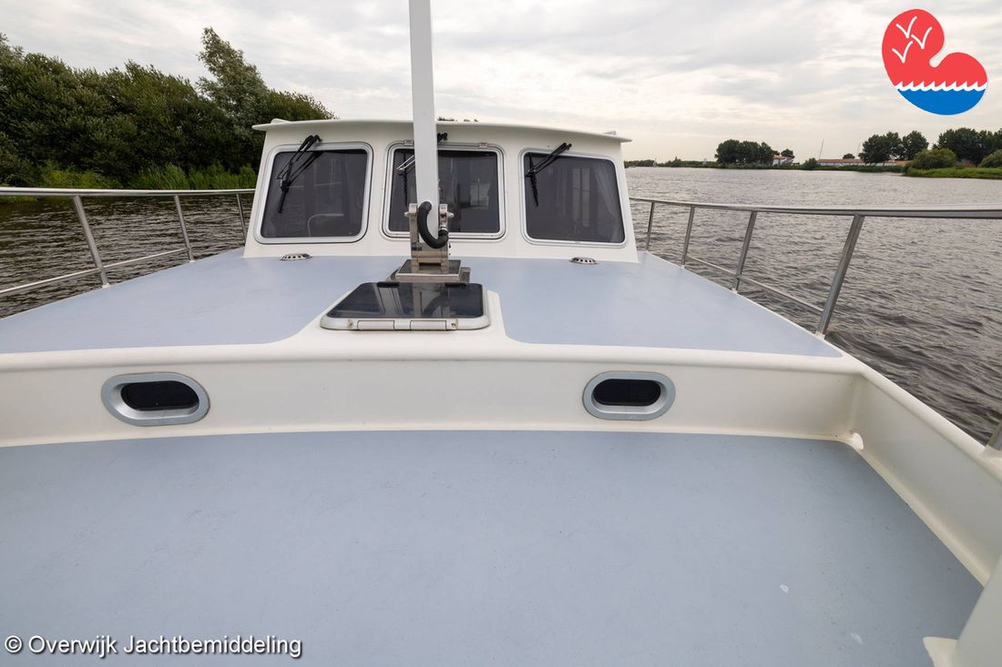 Delivered new Designer Huitema Shipyard Jachtwerf Bouma, Harlingen Hull number 5 CE-category C Comments CE-category Coastal waters. CE max weight 2200 kg Passenger capacity 6 CE-standard C Hull deck superstructure Hull shape multi-chine Hull colour black Deck colour white Deck construction steel Cockpit aft cockpit Open cockpit Windows Double glazing in aluminium profile with sliding window and casement window in living room. Dimensions and weights Minimum height 240 kg Displacement 12500 kg Steering and Drift Limitation Steering system wheel Comments Steering system With remote control in cockpit. Position steering system inside control Remote control Rudder single -