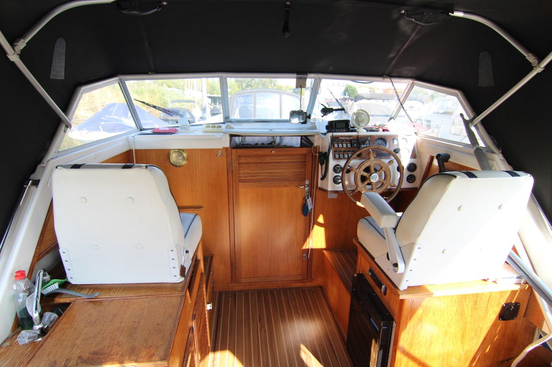 Delivered new Designer Skagerrak Hull deck superstructure Hull shape roundbilge Hull colour white Deck colour white Deck construction grp (polyester) Cockpit aft cockpit Open cockpit Steering and Drift Limitation Steering system wheel Position steering system outside control Rudder single -