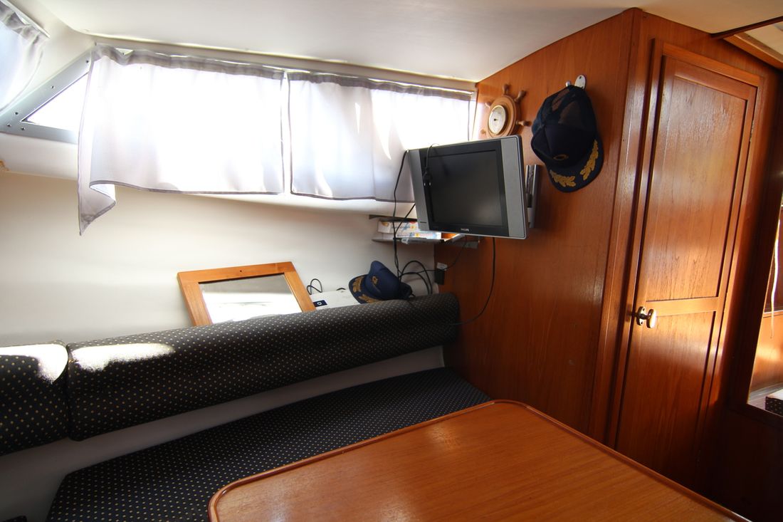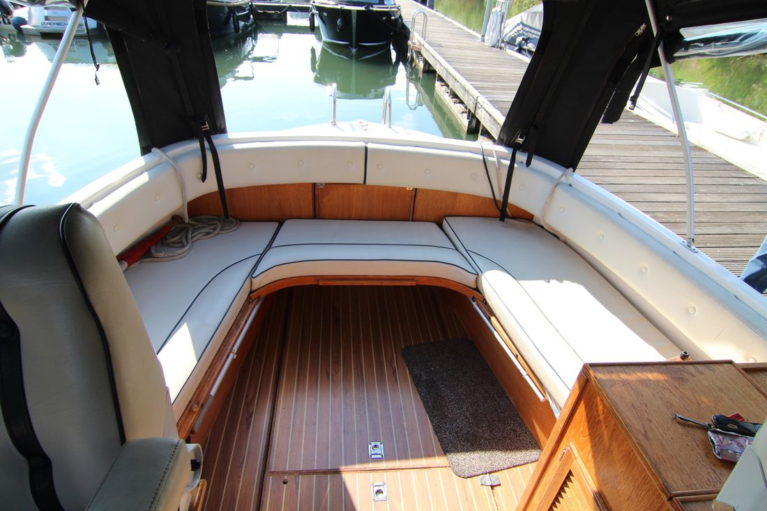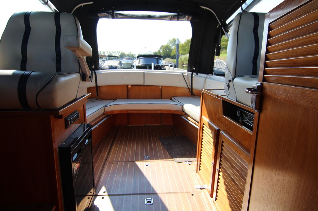 Spaces Saloon Separate Dining area Engine room Saloon Decoration Type interior Modern, wood look Color upholstery white Mattresses Cushions Curtains Water Water tank & material Capacity 120 litre Water tank gauge Inhoud 120 litre Waste water tank material stainless steel Waste water tank Waste water tank drainpump Plumbing Toilets 1 Manual Entertainment Television Radio/CD player Kitchen Cooker & fuel Number 2 Cooking fuel spirit Fridge & power source Capacity 65 litre Power source electric -