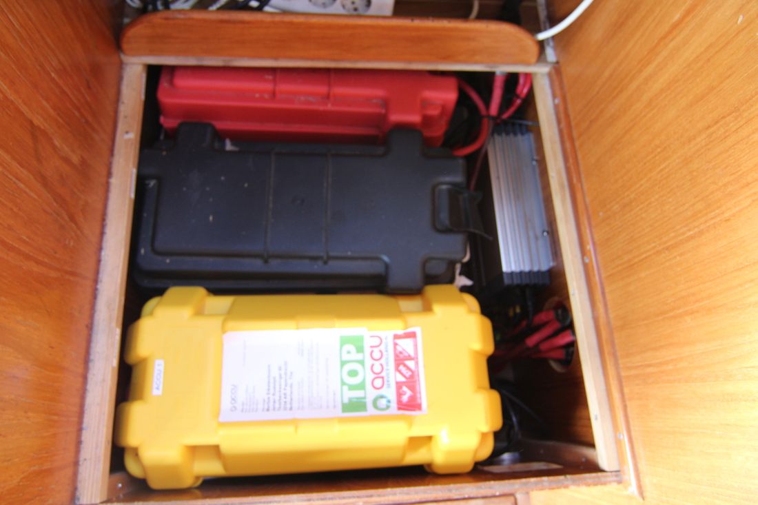 Engines Number of identical engines 1 Starting type electric Main engine Type inboard Brand Vetus Mitsubishi Model M4.17 Year 2008 Number of cylinders 4 Power 42 hp Hours counter Engine hours 2021 Fuel diesel Brand gearbox Hydr Hurth Drive Transmission shaft Propulsion propellor Tank Fuel tanks Number 1 Total fuel tank(s) capacity 120 litre Fuel tank material stainless steel Measuring instruments Fuel tank gauge Tachometer Oil pressure gauge Temperature gauge Bow and stern thruster Bow thruster electric Electricity Battery Number 3 Battery charger Alternator Inverter Shore power Shore power cable 12V -
