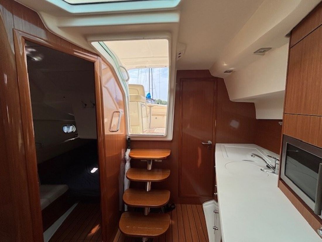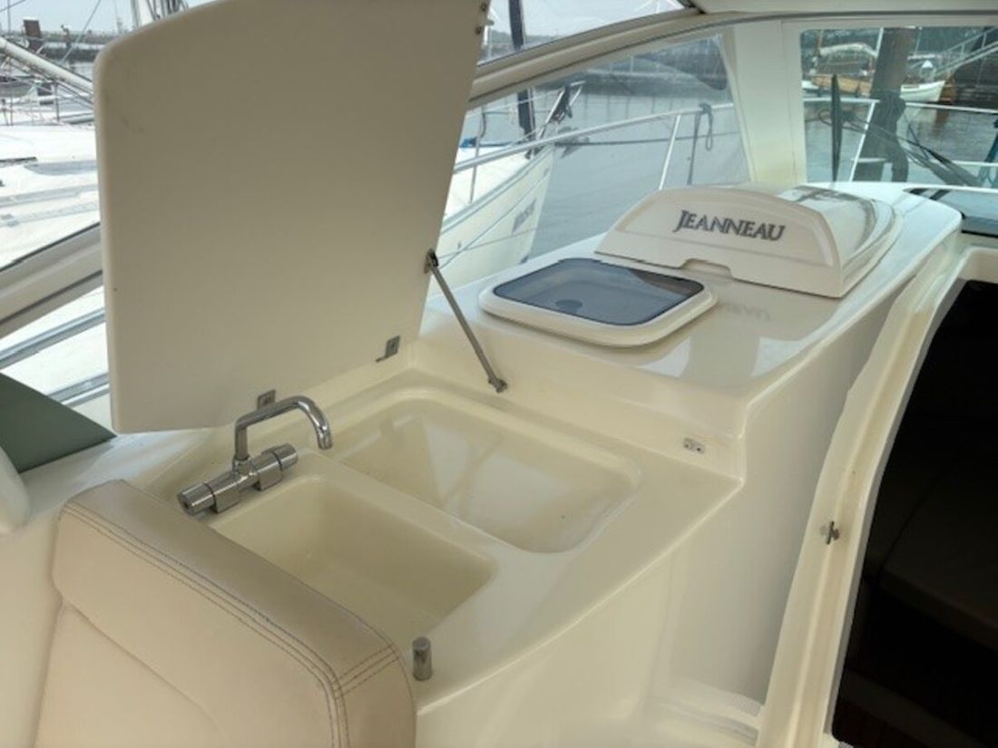 Delivered new Designer Garroni Shipyard Jeanneau CE-category B Passenger capacity 8 Hull deck superstructure Hull shape v-bottom Hull colour white Deck colour white Deck construction grp (polyester) Cockpit aft cockpit Open cockpit Aft cockpit Dimensions and weights Waterline length 890 cm Displacement 6370 kg Steering and Drift Limitation Steering system wheel Position steering system outside control Trimflaps -
