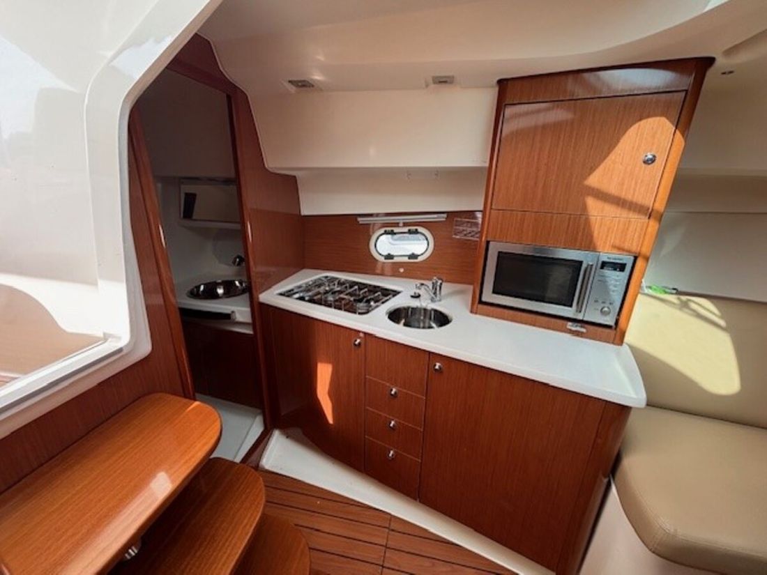 This Prestige 30S is not only beautiful to look at but also technically in top condition. Both stern drives have recently been completely overhauled, ensuring carefree sailing and the powerful engines operate smoothly and reliably. Onboard, you'll find a full range of equipment, including a modern chartplotter and VHF radio, so you'll always be well-prepared. The spacious cockpit and clever layout make her ideal for relaxed day trips, enjoyable weekends, or long summer vacations on the water.