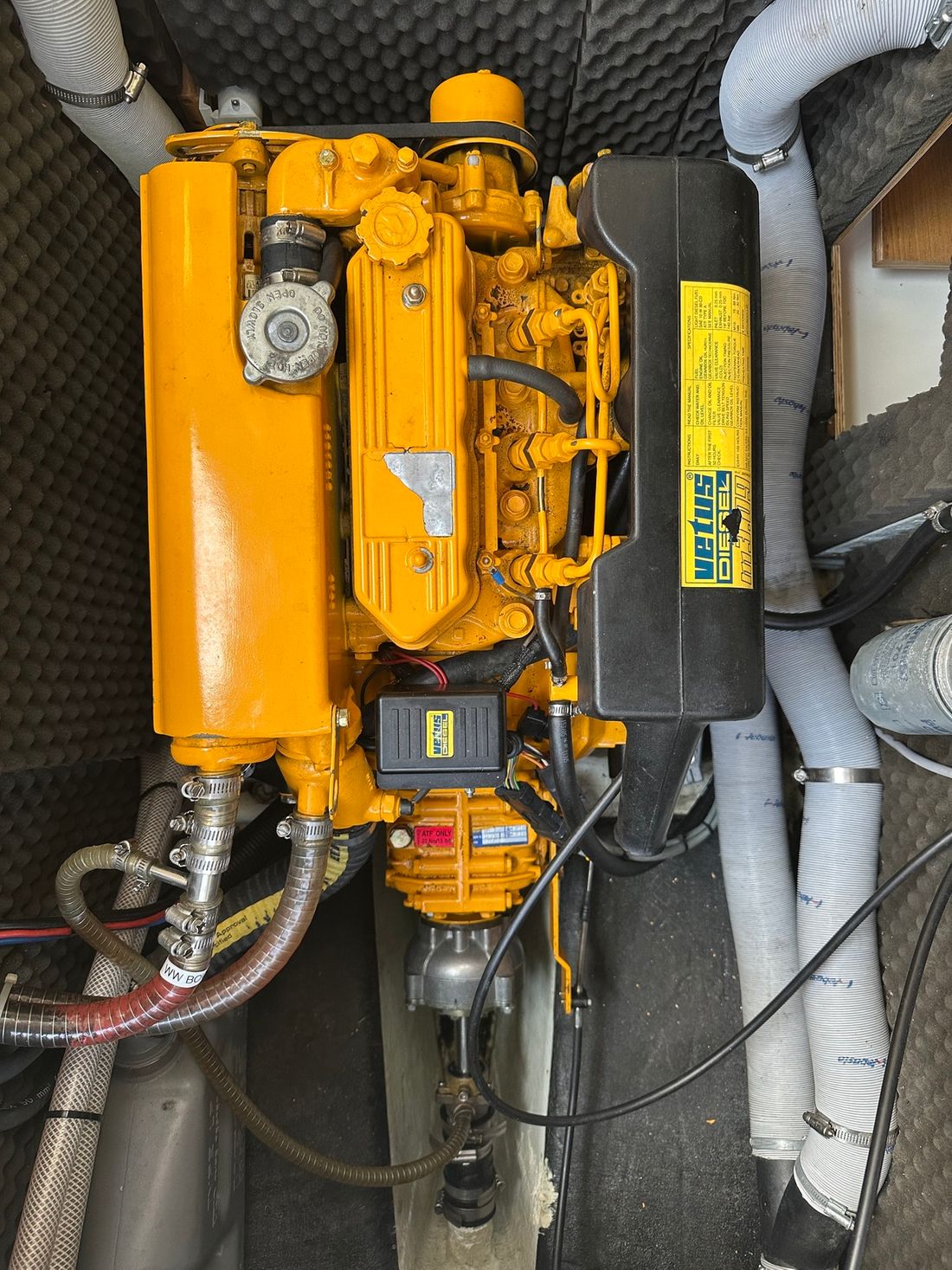 Engines Number of identical engines 1 Starting type electric Main engine Type inboard Brand Vetus Model M3.08 Year 2006 Number of cylinders 3 Power 25 hp Fuel diesel Drive Transmission shaft Tank Fuel tanks Number 1 Total fuel tank(s) capacity 60 litre Fuel tank material stainless steel Electricity Battery Battery charger Capacity 15 Shore power Shore power cable 12V -