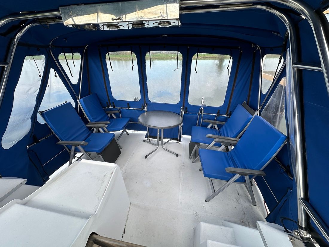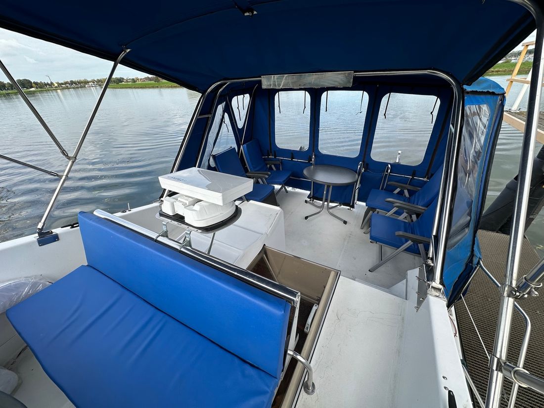 Delivered new Shipyard Recla tarpon Hull deck superstructure Hull shape v-bottom Hull colour blue Deck colour white Deck construction grp (polyester) Flybridge Aft cockpit Dimensions and weights Minimum height 330 cm Displacement 9000 kg Steering and Drift Limitation Steering system wheel Position steering system dual control Rudder 0 Keel/Lee board 0 -