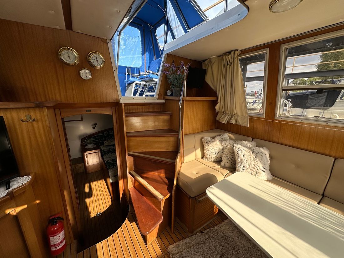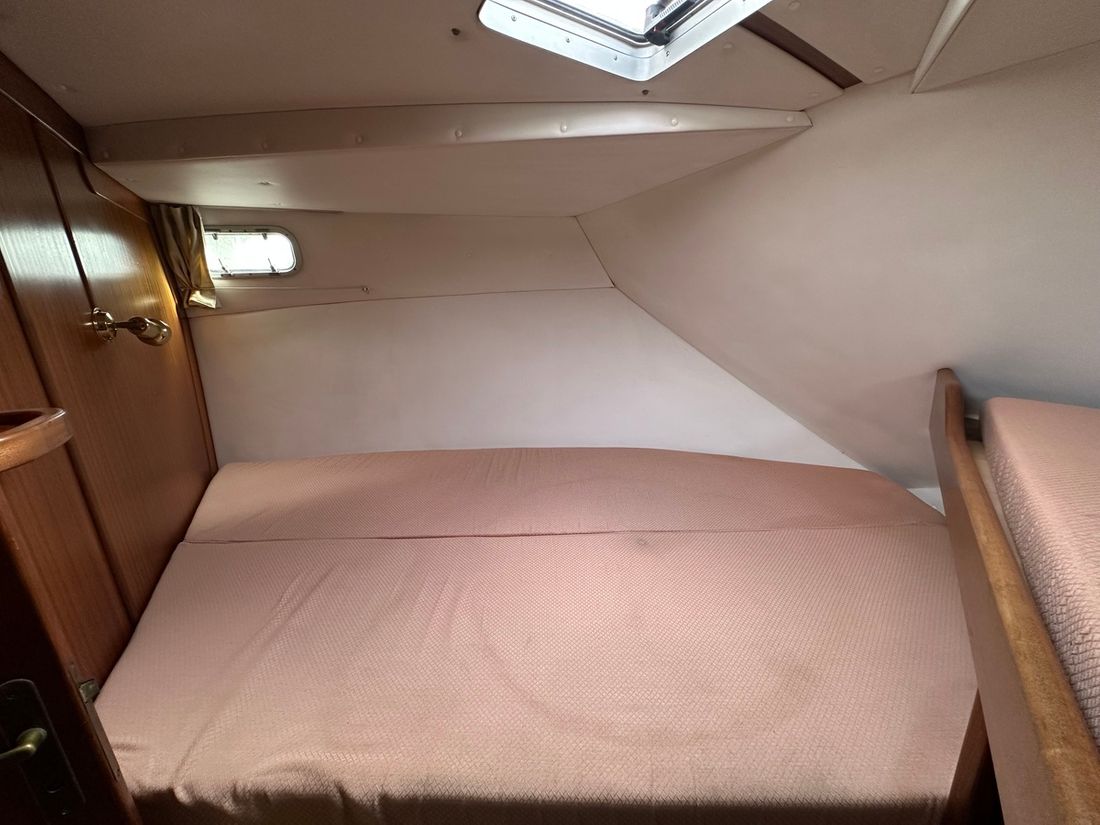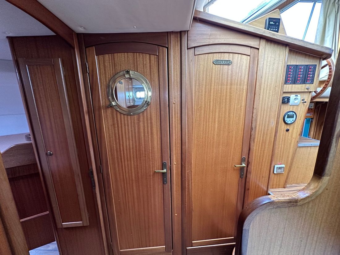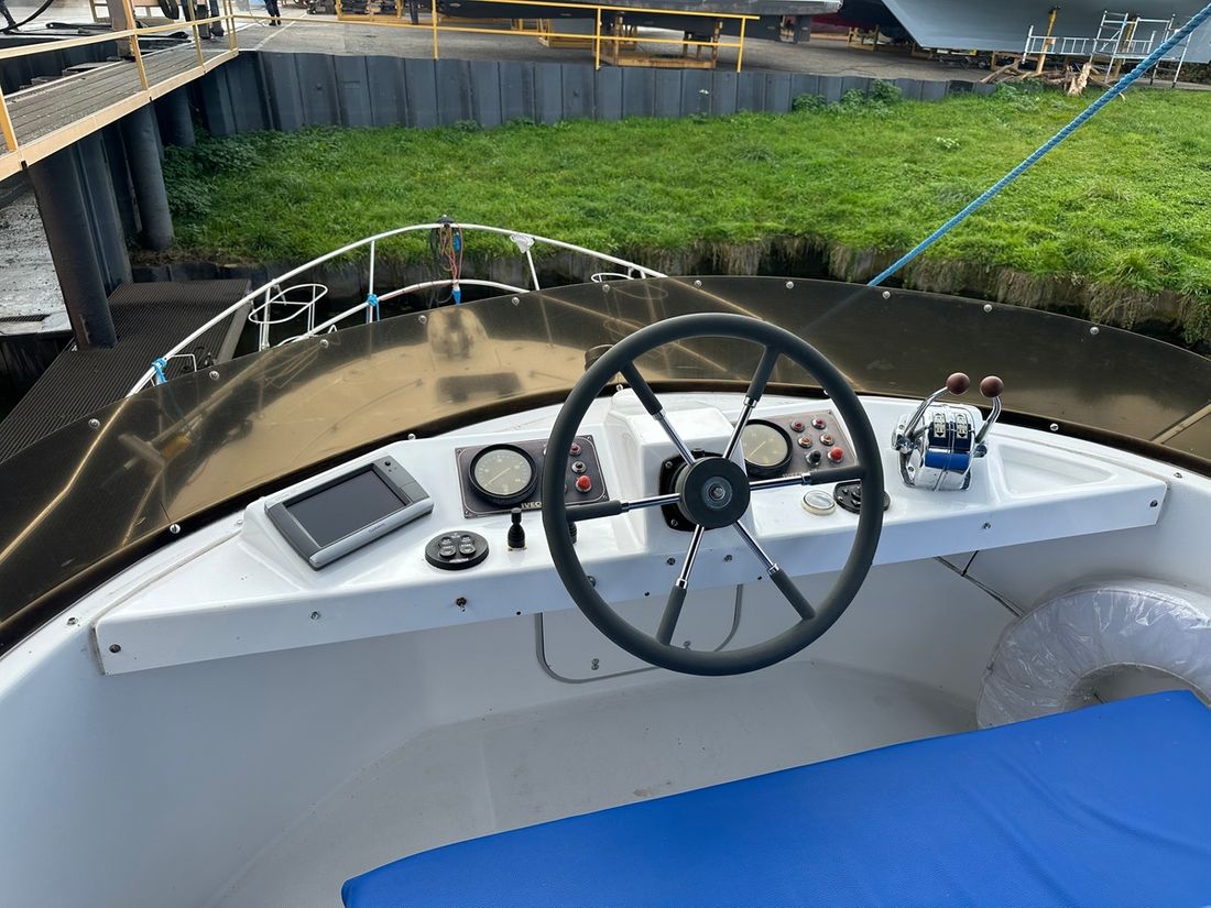 Engines Number of identical engines 2 Starting type electric Main engine Type inboard Brand Iveco Model 8141 Serial number 1655860 / 165858 Year 1997 Power 130 hp Hours counter Fuel diesel Drive Transmission shaft Propulsion propellor Cooling system indirect Tank Fuel tanks Measuring instruments Fuel tank gauge Brand fuel tank gauge 2x Tachometer Oil pressure gauge Temperature gauge Bow and stern thruster Bow thruster electric Stern thruster electric Electricity Battery Battery charger Generator Capacity 4 Brand generator Allpa diesel 4SY ( 2022 ) Voltmeter Shore power Shore power cable 12V 220V -