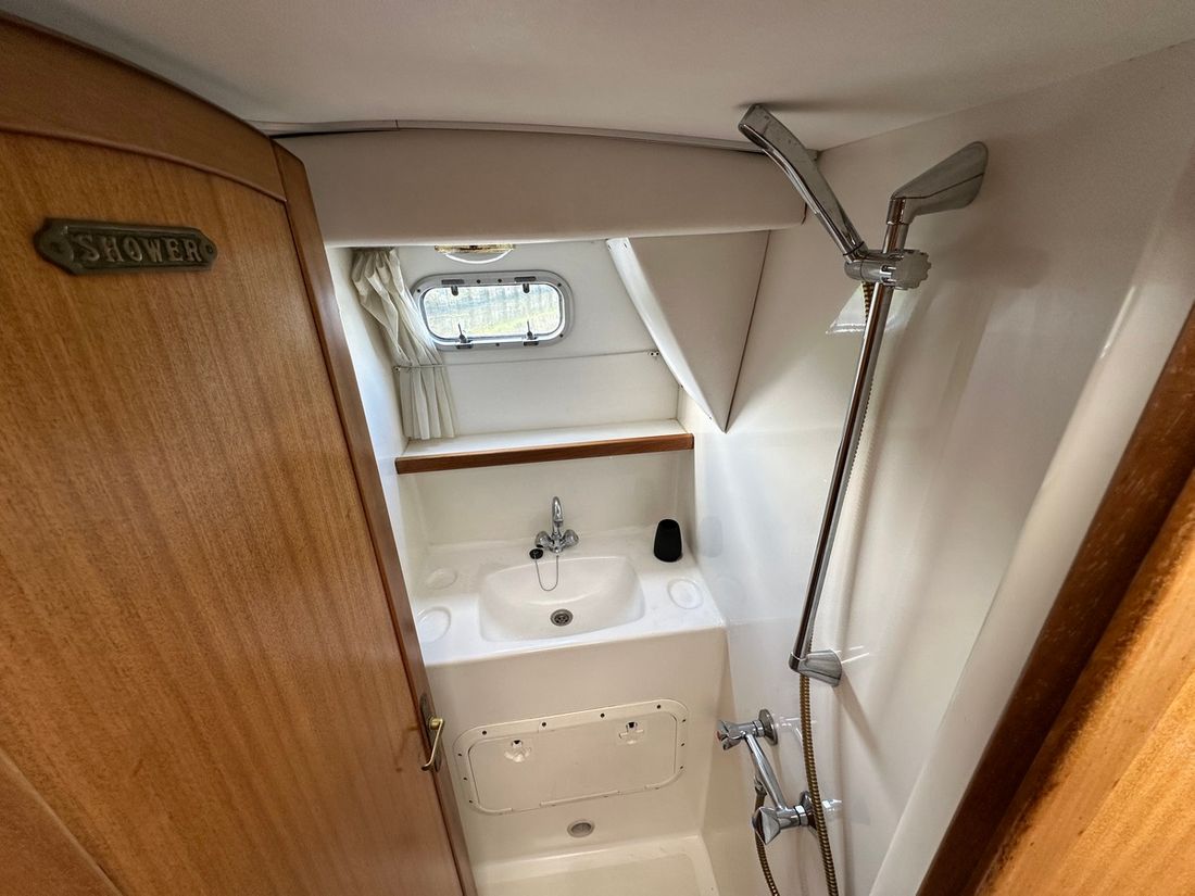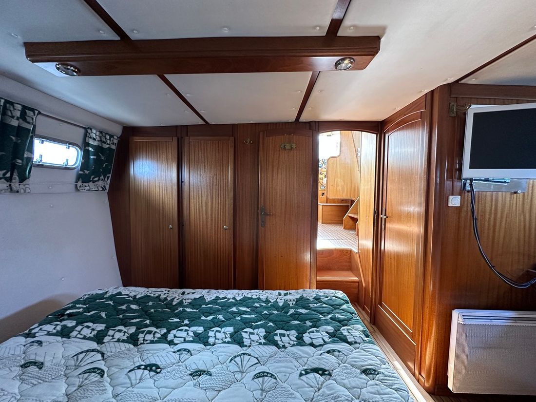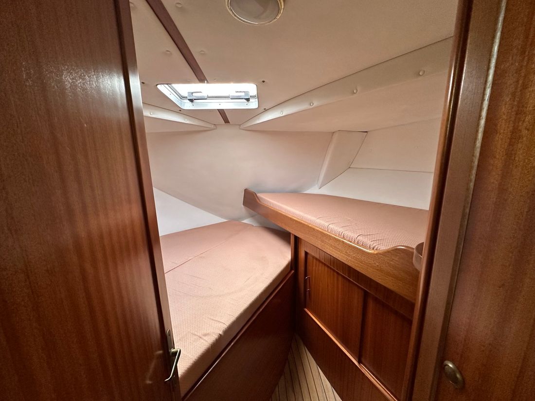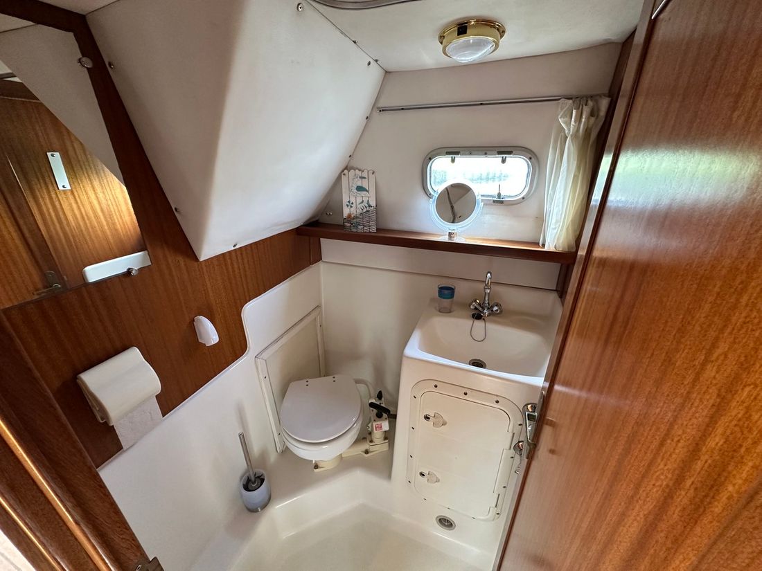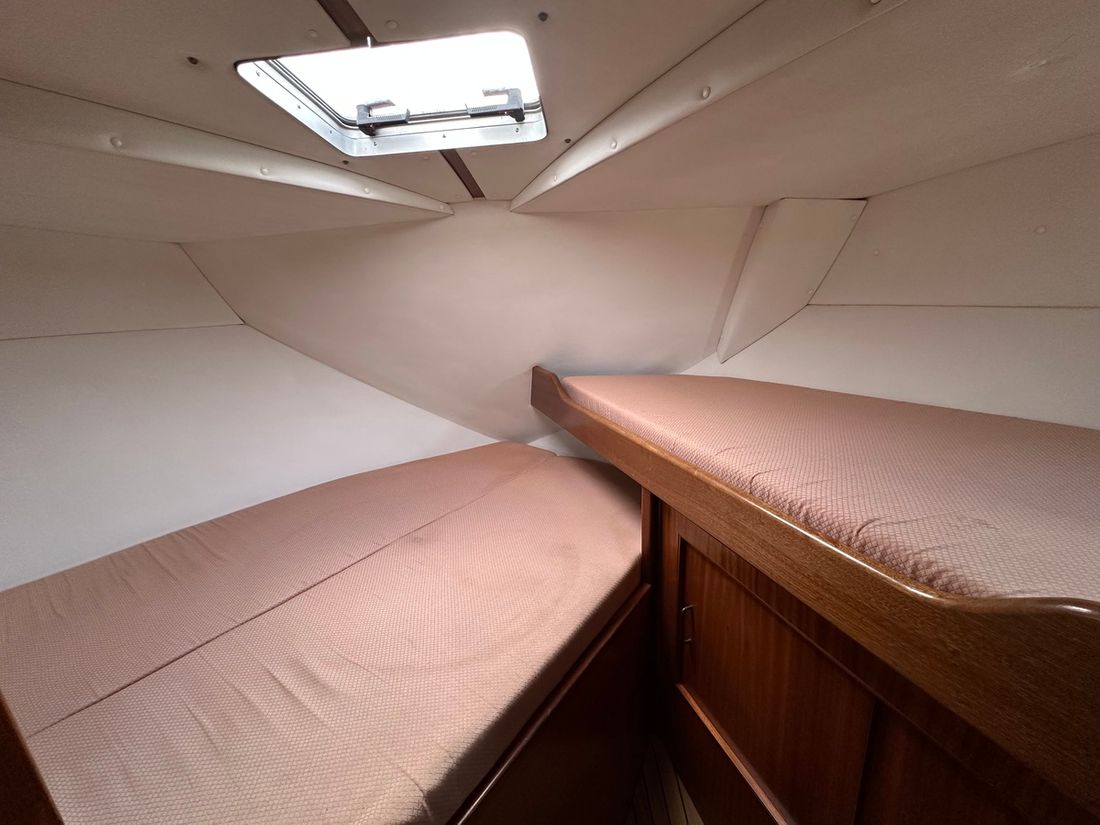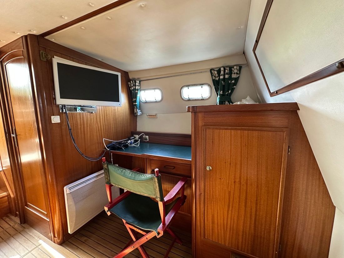 Spaces Saloon Cabins 2 Decoration Type interior Modern, light Mattresses Cushions Curtains Water Water tank & material Water system pressure Hot water Plumbing Number of showers 1 Toilets 2 Manual Entertainment Television Satellite reception Kitchen Cooker & fuel Number 2 Cooking fuel electric Fridge & power source Climate control hot air -