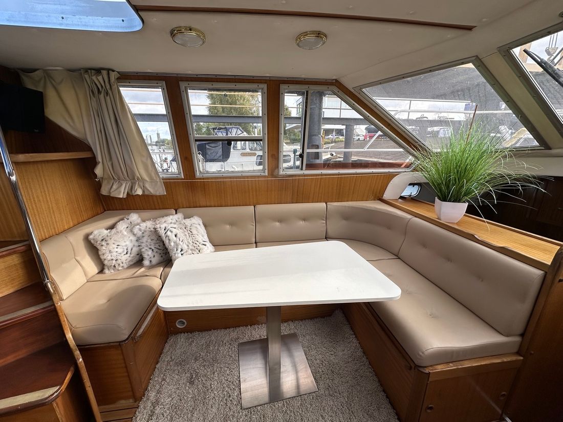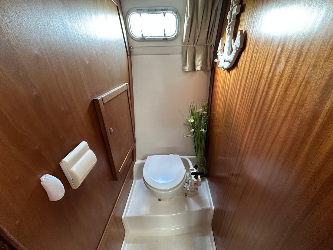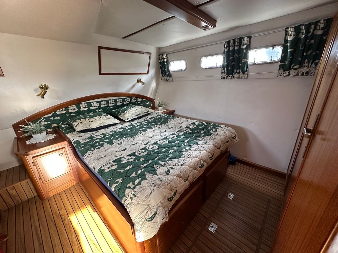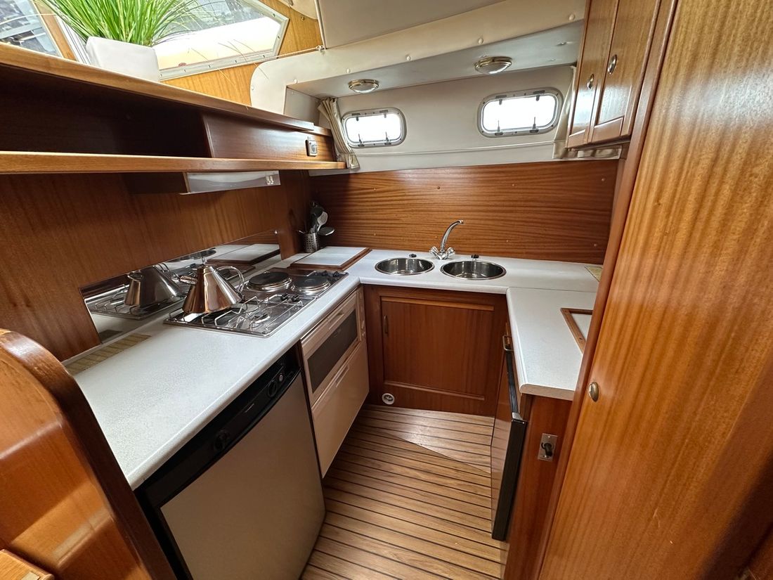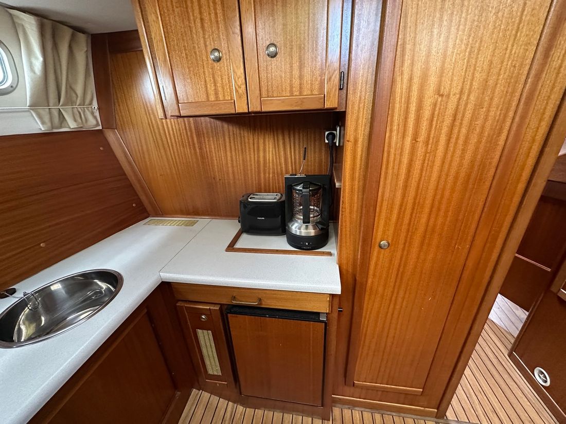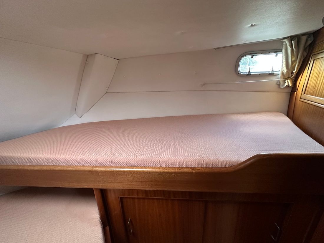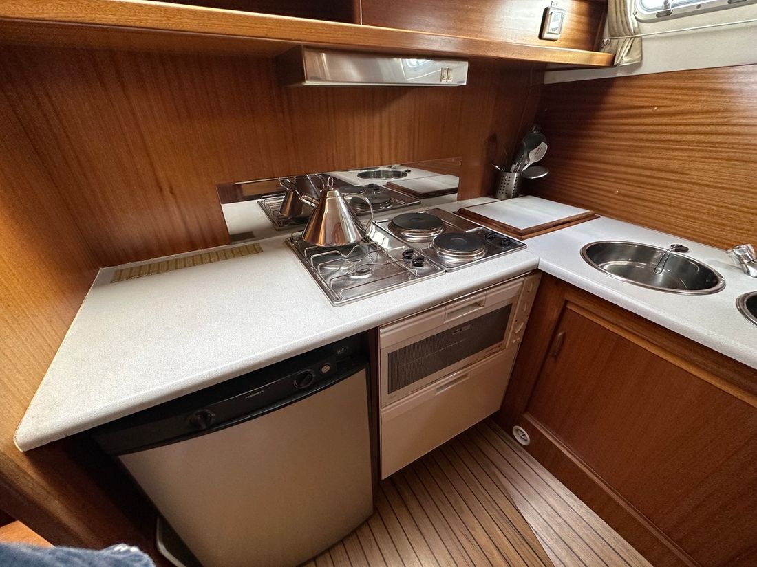 Spaces Saloon Cabins 2 Decoration Type interior Modern, light Mattresses Cushions Curtains Water Water tank & material Water system pressure Hot water Plumbing Number of showers 1 Toilets 2 Manual Entertainment Television Satellite reception Kitchen Cooker & fuel Number 2 Cooking fuel electric Fridge & power source Climate control hot air -