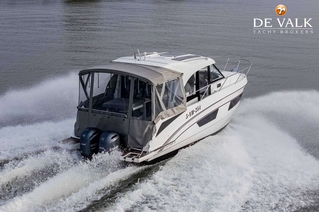 The Beneteau Antares 9 (2022) is a modern, sporty cruiser measuring 9.12 meters, powered by twin Yamaha 150 HP outboards. With a spacious saloon, two cabins, and four berths, she?s perfect for comfortable weekend getaways. Equipped with Raymarine navigation, electric windlass, bow thruster, and premium features such as a teak deck, refrigerator, microwave, and hot water system. This beautifully maintained Antares offers the perfect blend of performance, comfort, and style ? fully ready for new adventures.