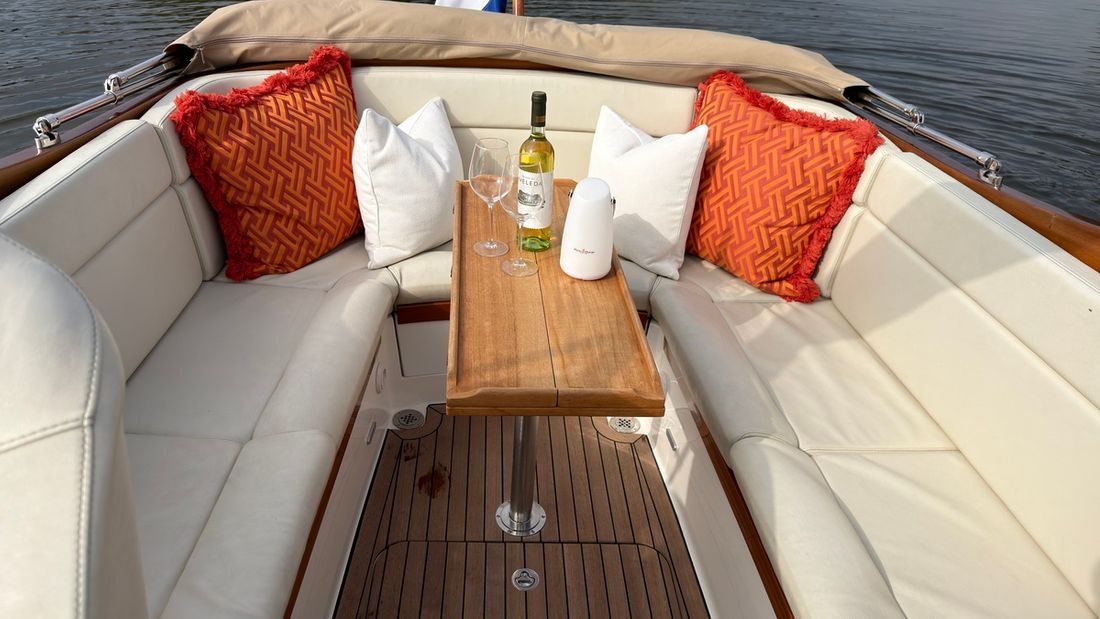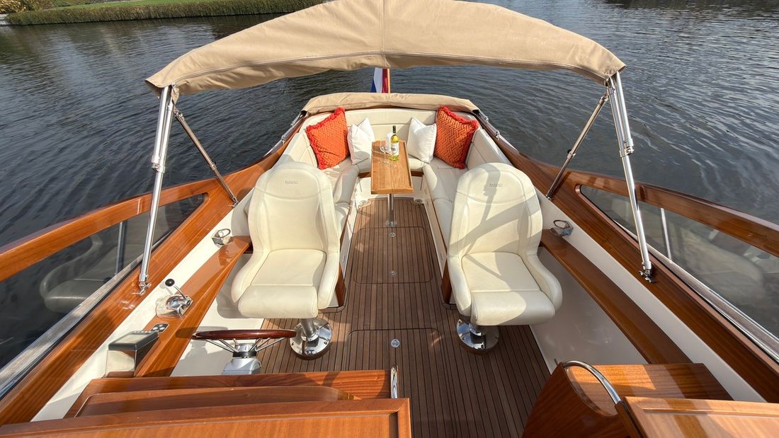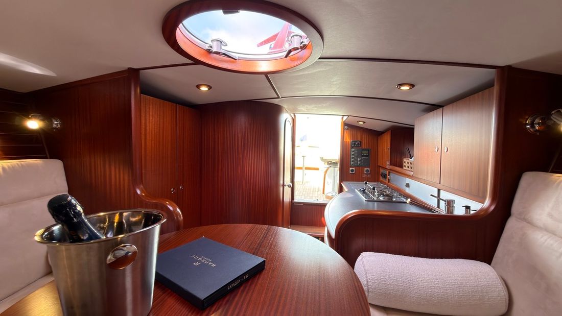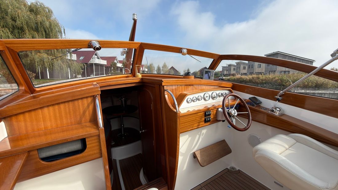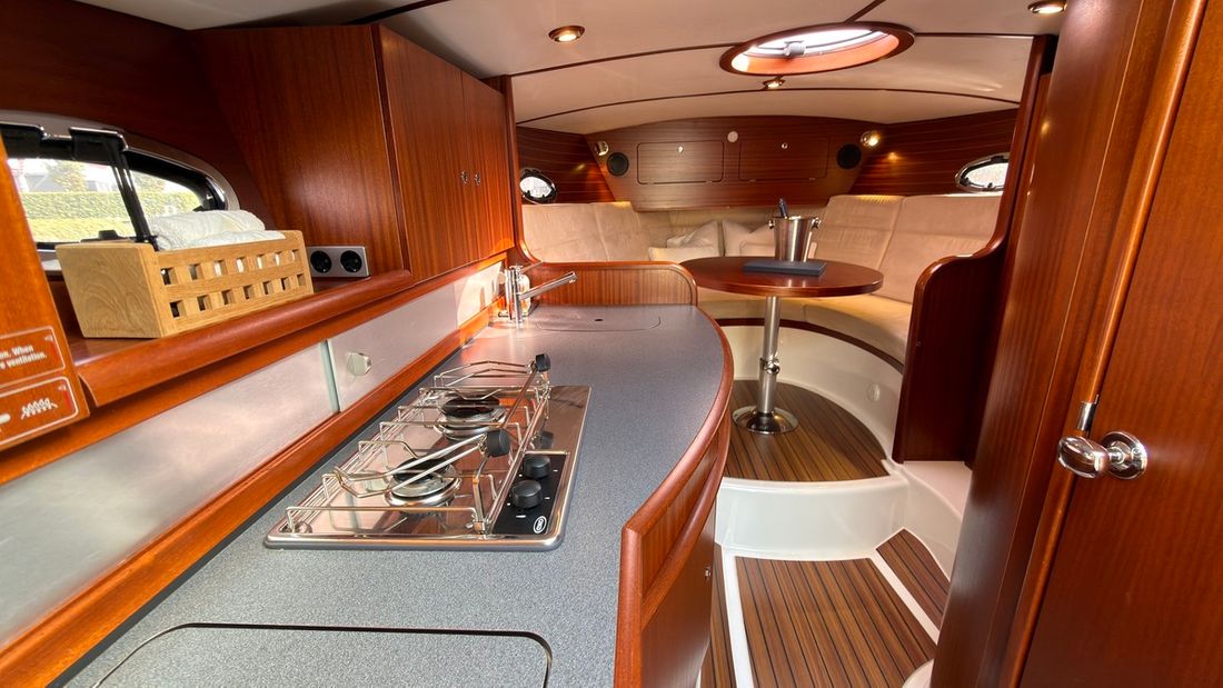 Spaces Saloon Separate Dining area Engine room Cabins 1 Saloon Decoration Type interior Classic, warm Color upholstery white Mattresses Cushions Curtains Water Water tank & material Capacity 150 litre Water tank gauge Inhoud 45 litre Waste water tank material plastic Waste water tank Waste water tank gauge Deck suction Water system pressure Hot water Deck Shower Plumbing Number of showers 1 Toilets 1 Electric Entertainment Radio/CD player Kitchen Cooker & fuel Number 2 Cooking fuel gas Fridge & power source Capacity 50 litre Climate control Heating 2 hot air -