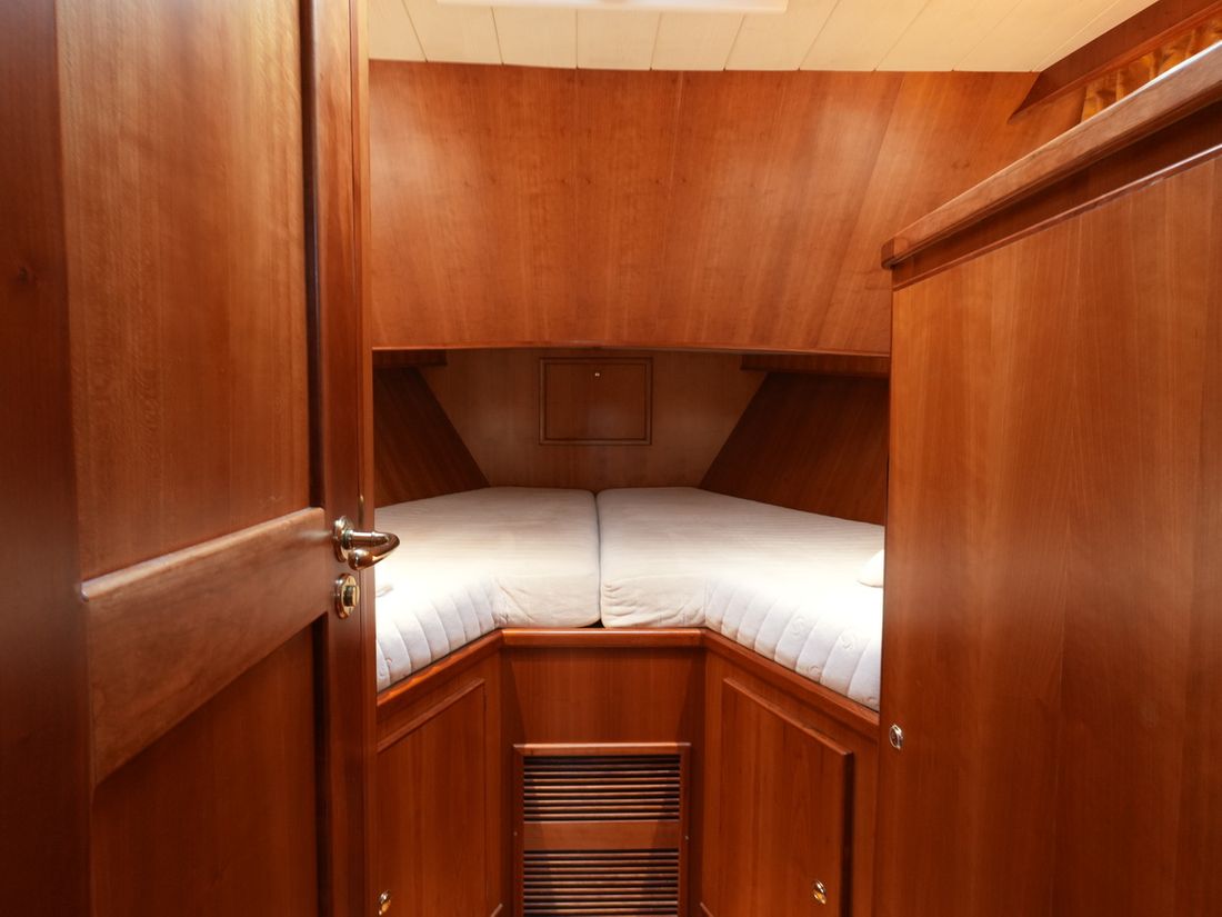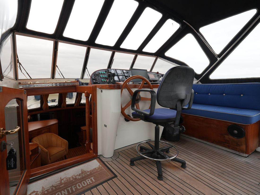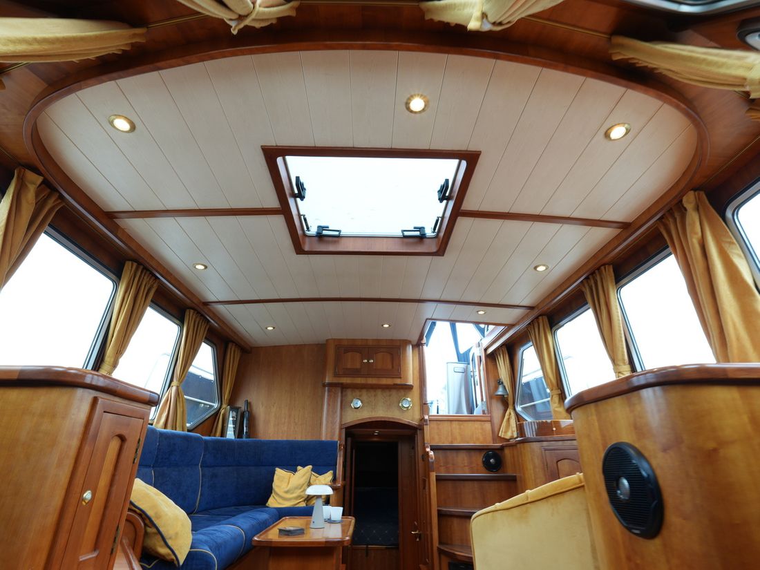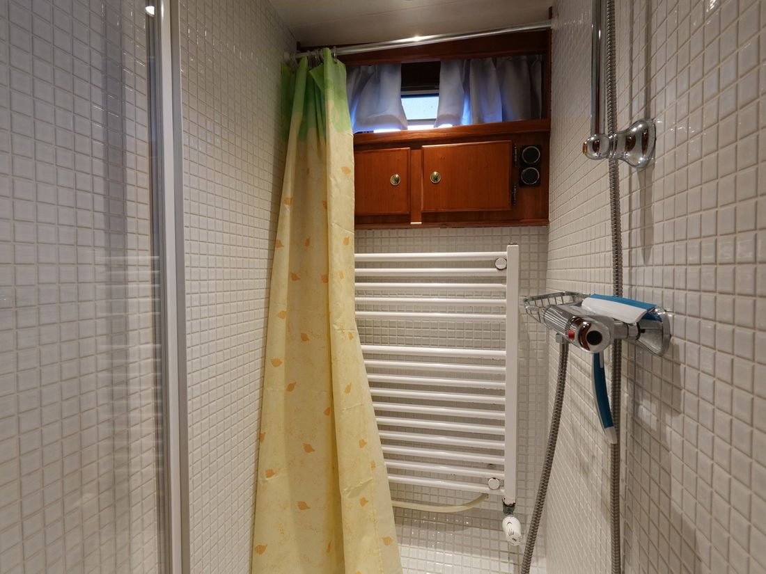 Spaces Saloon Separate Dining area Engine room Cabins 2 Decoration Type interior Classic, warm Color upholstery blue Mattresses Cushions Curtains Water Water tank & material Capacity 1000 litre Water tank material stainless steel Water tank gauge Inhoud 300 litre Waste water tank material stainless steel Waste water tank Waste water tank gauge Deck suction Water system pressure Hot water Plumbing Number of showers 1 Toilets 2 Electric Entertainment Television Radio/CD player Kitchen Number 4 Cooking fuel electric Oven Amount 1 Microwave Amount 1 Fridge & power source Capacity 120 litre Power source electric Freezer Climate control Heating 1 Central heating -