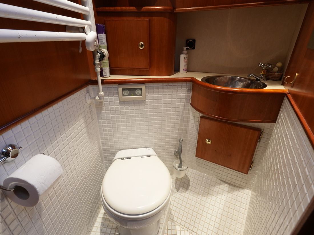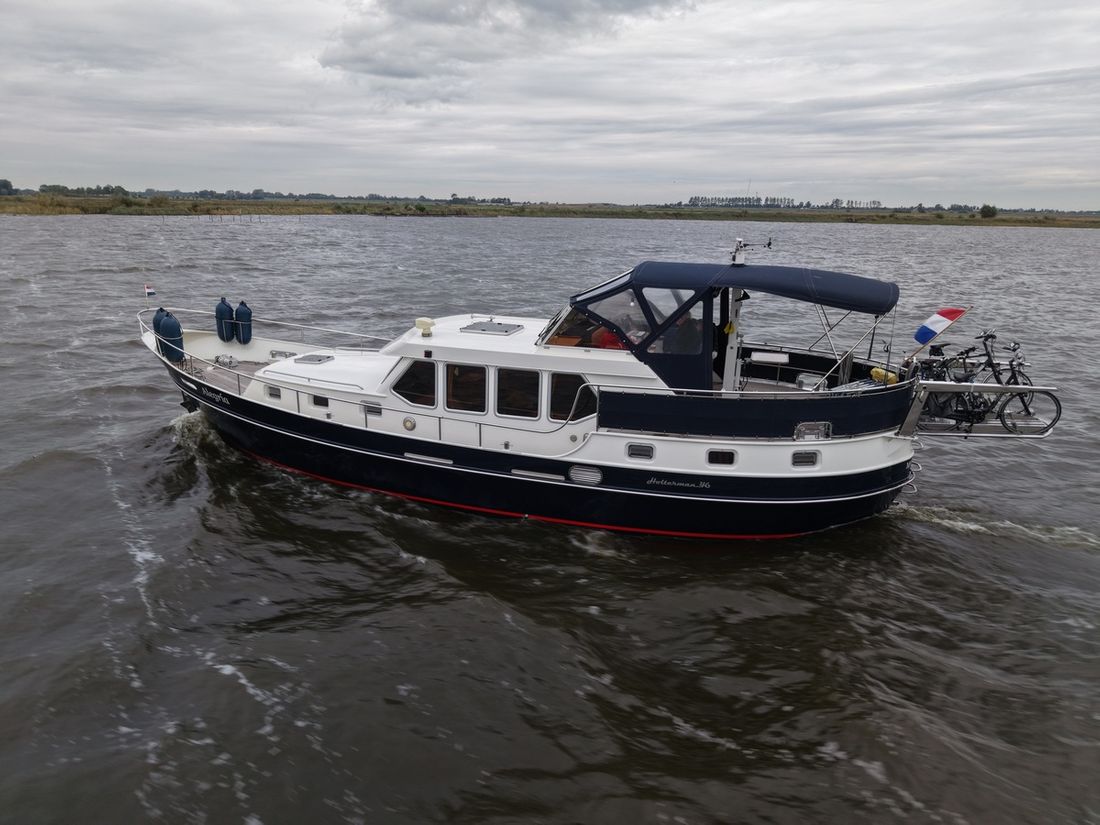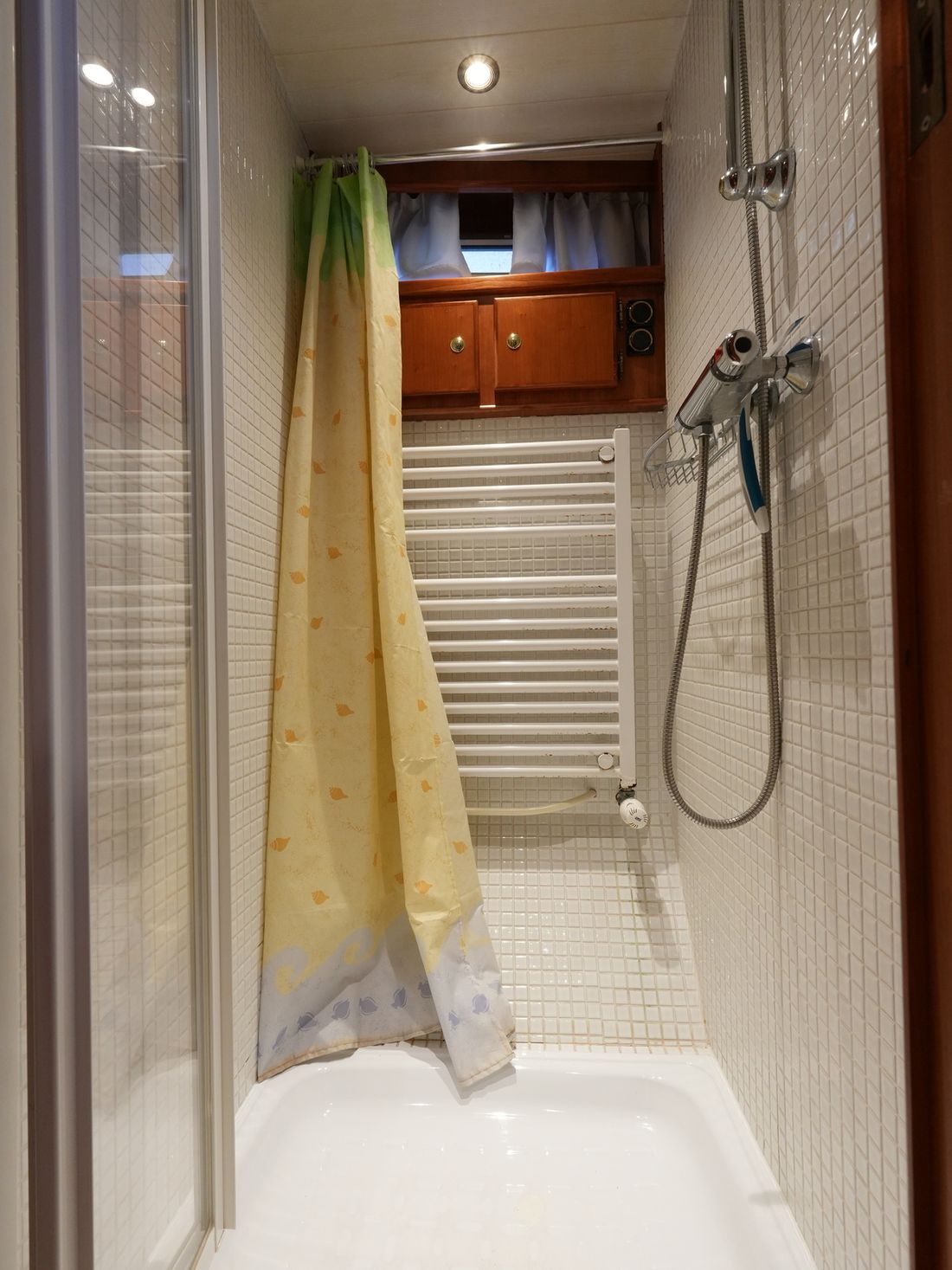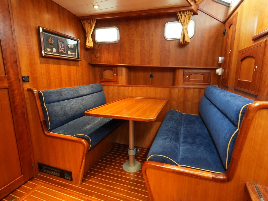 Spaces Saloon Separate Dining area Engine room Cabins 2 Decoration Type interior Classic, warm Color upholstery blue Mattresses Cushions Curtains Water Water tank & material Capacity 1000 litre Water tank material stainless steel Water tank gauge Inhoud 300 litre Waste water tank material stainless steel Waste water tank Waste water tank gauge Deck suction Water system pressure Hot water Plumbing Number of showers 1 Toilets 2 Electric Entertainment Television Radio/CD player Kitchen Number 4 Cooking fuel electric Oven Amount 1 Microwave Amount 1 Fridge & power source Capacity 120 litre Power source electric Freezer Climate control Heating 1 Central heating -