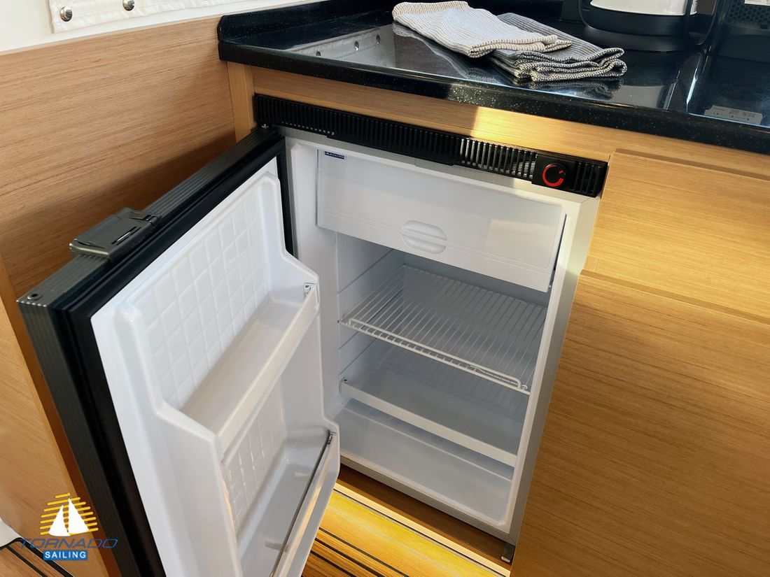 Safety Electric Bilge pump Comments Bilge pump 1x hand, 1x electric Comments Fire extinguisher Fire extinguisher Watertight door Gas bottle locker with drain Comments Gas bottle locker with drain With drain Self-draining cockpit