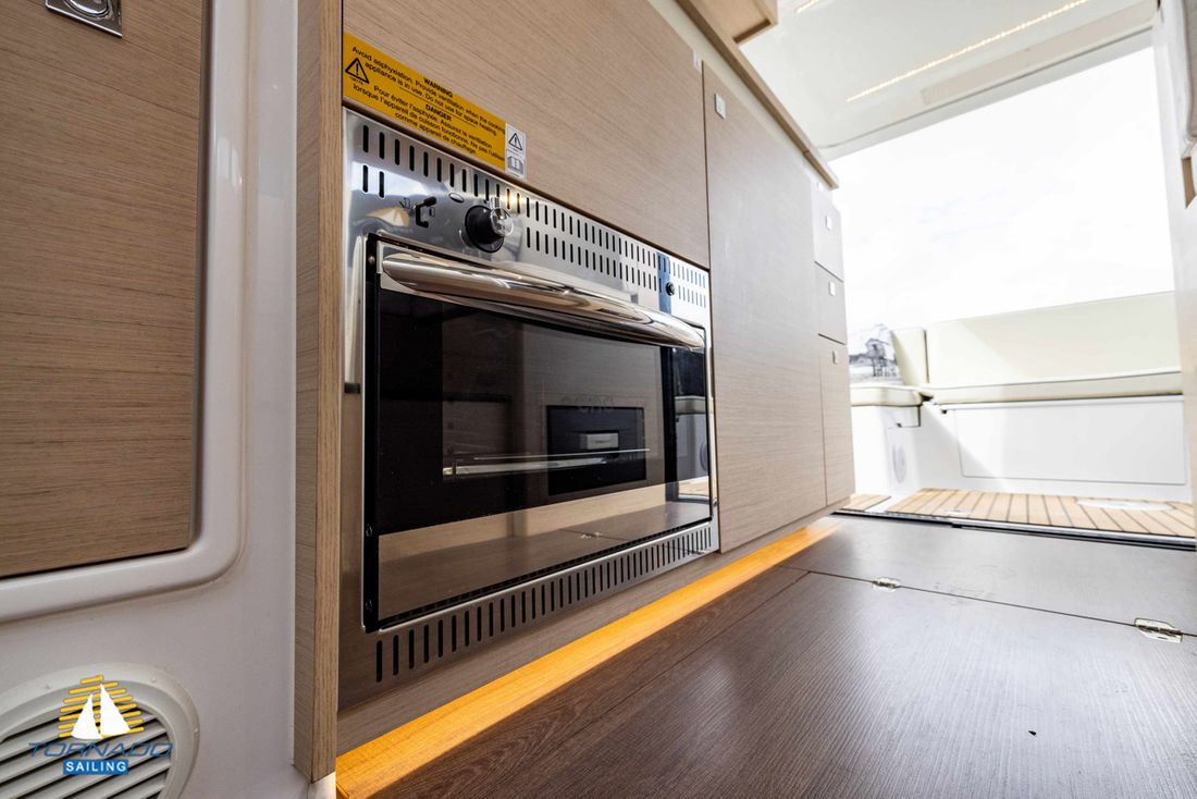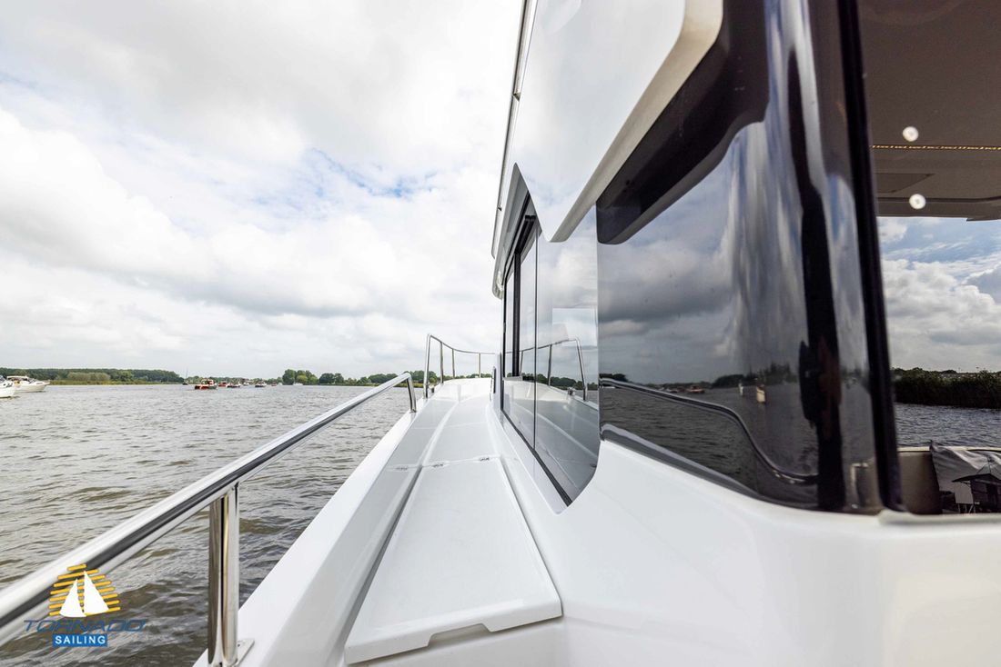 Engines Number of identical engines 1 Starting type electric Main engine Type inboard Brand Torqeedo Model Deep Blue 50i, 80hp/55,10kW incl. 80kWh battery pack Year 2022 Power 80 hp Hours counter Fuel electric Drive Transmission shaft Propulsion propellor Cooling system indirect Tank Number 1 Fuel tank material stainless steel Performance Cruising speed 8 km/h Range 228 km Measuring instruments Fuel tank gauge Tachometer Oil pressure gauge Temperature gauge Bow and stern thruster Bow thruster electric Stern thruster electric Electricity Battery Battery charger Alternator Battery monitor Voltmeter Shore power Shore power cable Solar panel 12V 220V -