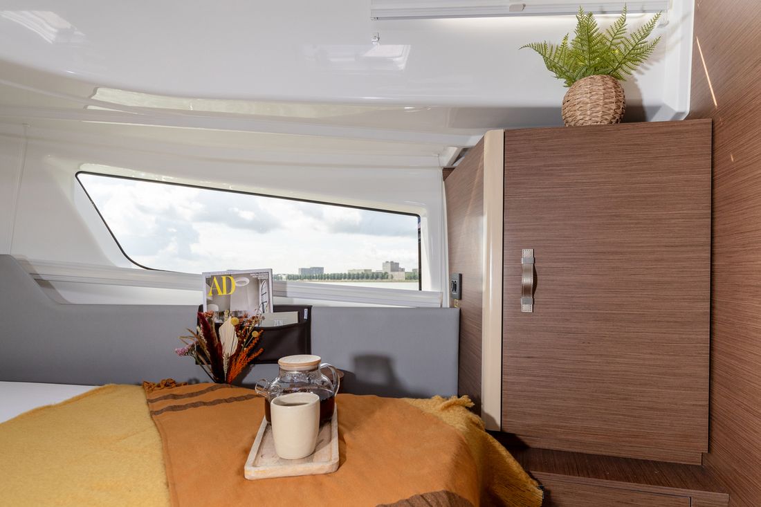 The Delphia 10 Lounge focuses on outdoor spaces. Being in touch with friends and family to unwind on the water is what the Lounge version stands for.