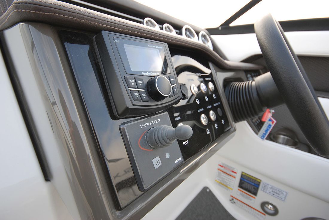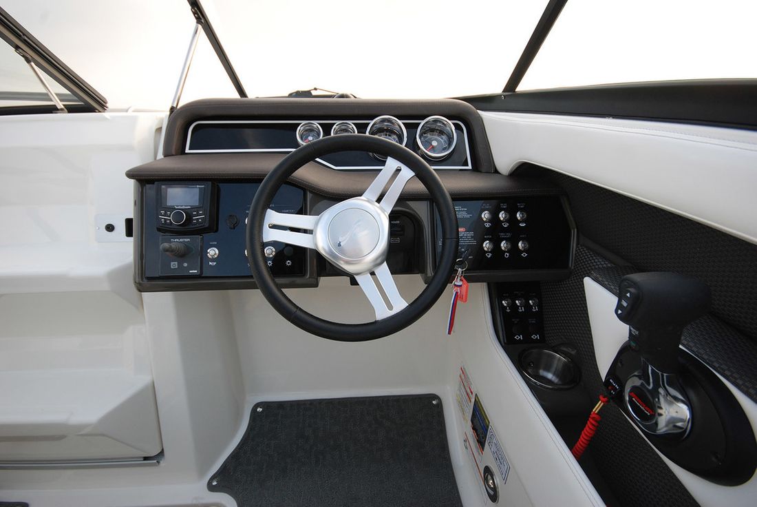 Engines Number of identical engines 1 Starting type electric Main engine Type inboard Brand Mercury Comments Brand MerCruiser Model Mercruiser Year 2018 Number of cylinders 6 Power 250 hp Comments Power MerCruiser 4.5 L ECT MPI Bravo lll (250 hp) Hours counter Fuel gasoline Comments Fuel Petrol Drive Transmission stern drive Propulsion propellor Cooling system direct Tank Fuel tanks Comments Fuel tanks 283 L. Number 1 Total fuel tank(s) capacity 283 litre Measuring instruments Fuel tank gauge Comments Fuel tank gauge SmartCraft instruments Tachometer Oil pressure gauge Comments Oil pressure gauge SmartCraft instruments Temperature gauge Bow and stern thruster Comments Bow thruster Optional Electricity Battery Comments Battery 2 pieces Alternator Comments Voltmeter SmartCraft instruments -