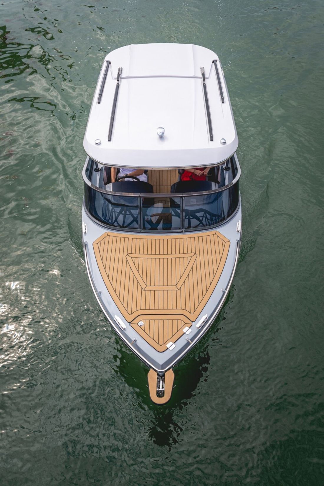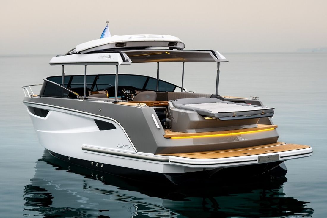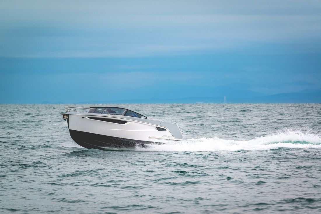 Size aside, you have almost everything you could find on a small yacht. Larger and spacious lounge with walk-around cockpit offers easy passage from the swim platform to the cabin, as well as to the bow. The comfortable sundeck at the stern can be extended and easily accommodates two people. The transom itself is a unique and unparalleled masterpiece of design and makes this model recognizable in its class.