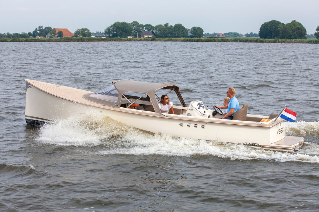 Category Reference number 84 Reference NEW Category Speedboat and sport cruiser Additional category Tender Brand Venegy Model V30 Classic Cabin Ship's name - Berth Type Office Country Netherlands Latitude 0.00000000 Longitude 0.00000000 General Status Available New or used New Boat type Motorboat New built Year of construction 2025 Hull material GRP (polyester) Account manager Vincent Ferrari Short description Meet the new Venegy V30 Classic Cabin. This fast-sailing tender is classically lined and has a spacious open cockpit with cabin. Motorization summary From 190 HP Vetus Diesel Broker yacht URL https://prinsvanoranje.yachtshift.nl/84/venegy-v30-classic-cabin Dimensions Length 900 centimetres Width 260 centimetres Draught 70 centimetres -