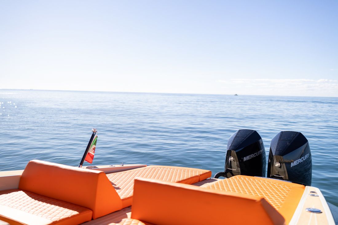 Engines Number of identical engines 2 Starting type electric Main engine Type outboard Brand Mercury Year 2025 Number of cylinders 8 Power 400 hp Hours counter Engine hours 0 Fuel gasoline Drive Transmission stern drive Propulsion propellor Cooling system direct Tank Fuel tanks Number 1 Total fuel tank(s) capacity 450 litre Fuel tank material polyethyleen Performance Max speed 45 knots Measuring instruments Fuel tank gauge Brand fuel tank gauge Mercury Tachometer Brand tachometer Mercury Oil pressure gauge Brand oil pressure gauge Mercury Temperature gauge Brand temperature gauge Mercury Bow and stern thruster Bow thruster electric Electricity Battery Number 3 Battery charger Alternator Inverter Voltmeter Brand Voltmeter Mercury Shore power Shore power cable 12V -