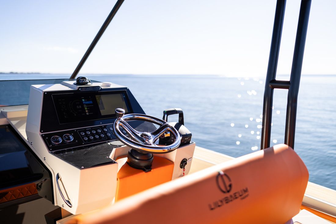 Delivered new Designer Lilybaeum Yacht s.r.l. Shipyard Lilybaeum Yacht s.r.l. CE-category B Passenger capacity 12 Hull deck superstructure Hull shape v-bottom Deck construction grp (polyester) Cockpit double cockpit Open cockpit Dimensions and weights Displacement 2500 kg Steering and Drift Limitation Steering system wheel Position steering system outside control Trimflaps -