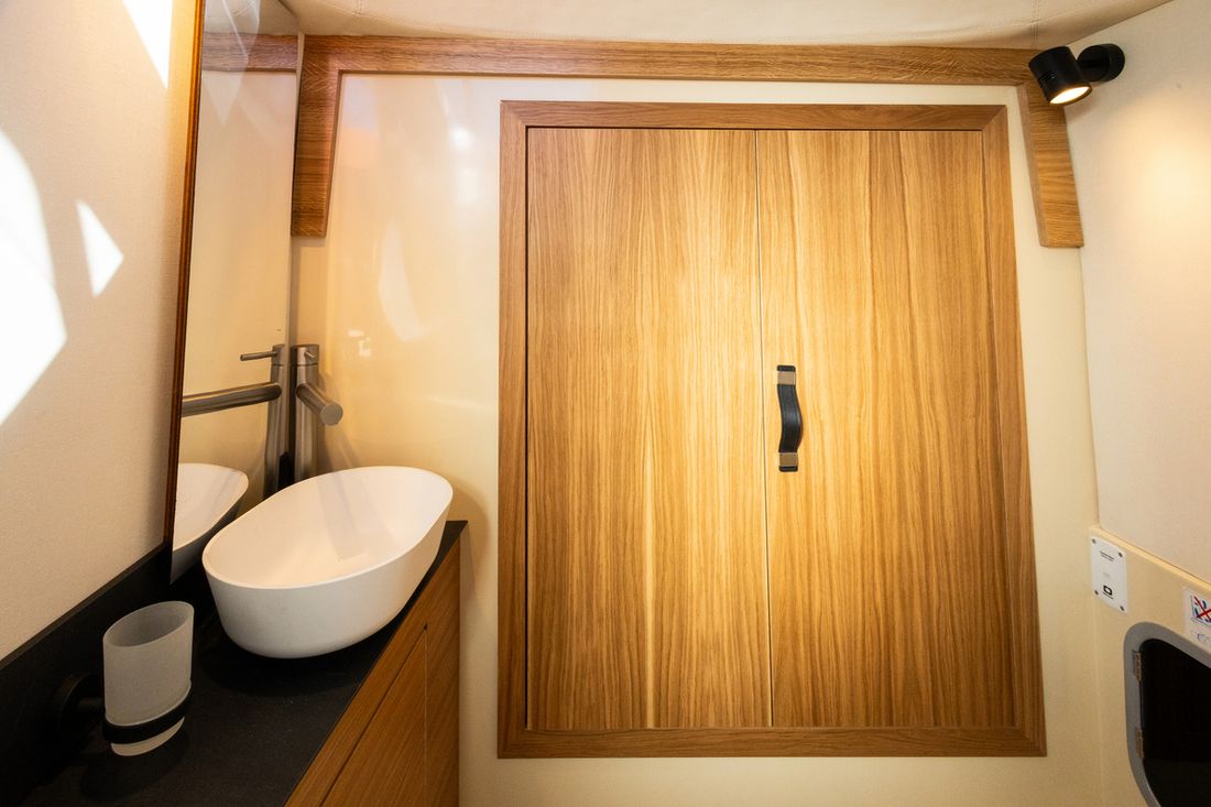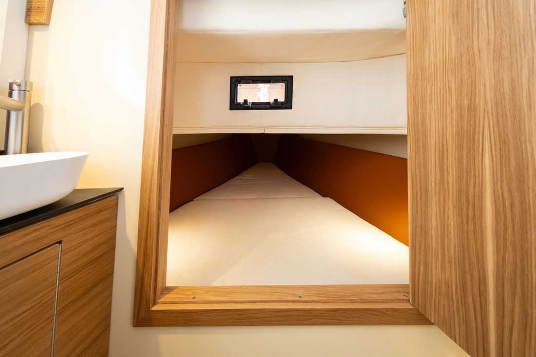 Spaces Cabins 1 Decoration Type interior Modern, wood look Cushions Water Water tank & material Capacity 140 litre Water tank material plastic Water system pressure Hot water Deck Shower Plumbing Number of showers 1 Toilets 1 Electric Entertainment Radio/CD player Kitchen Cooker & fuel Number 2 Cooking fuel electric Fridge & power source Capacity 49 litre Power source electric -
